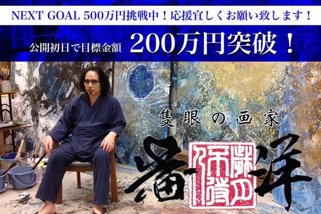 元刑事 片目を失った隻眼の画家・番洋 世界遺産で『皆と共に』展を成功させたい!200万円を開始わずか10時間余りで目標金額を達成! 次の目標金額は500万円を目指します!