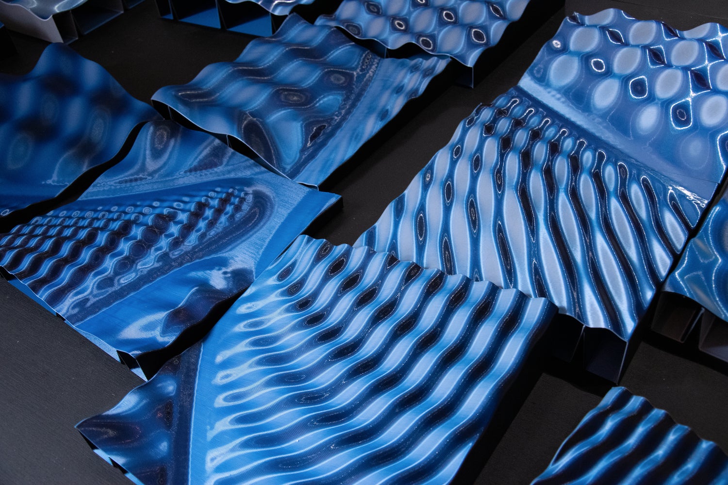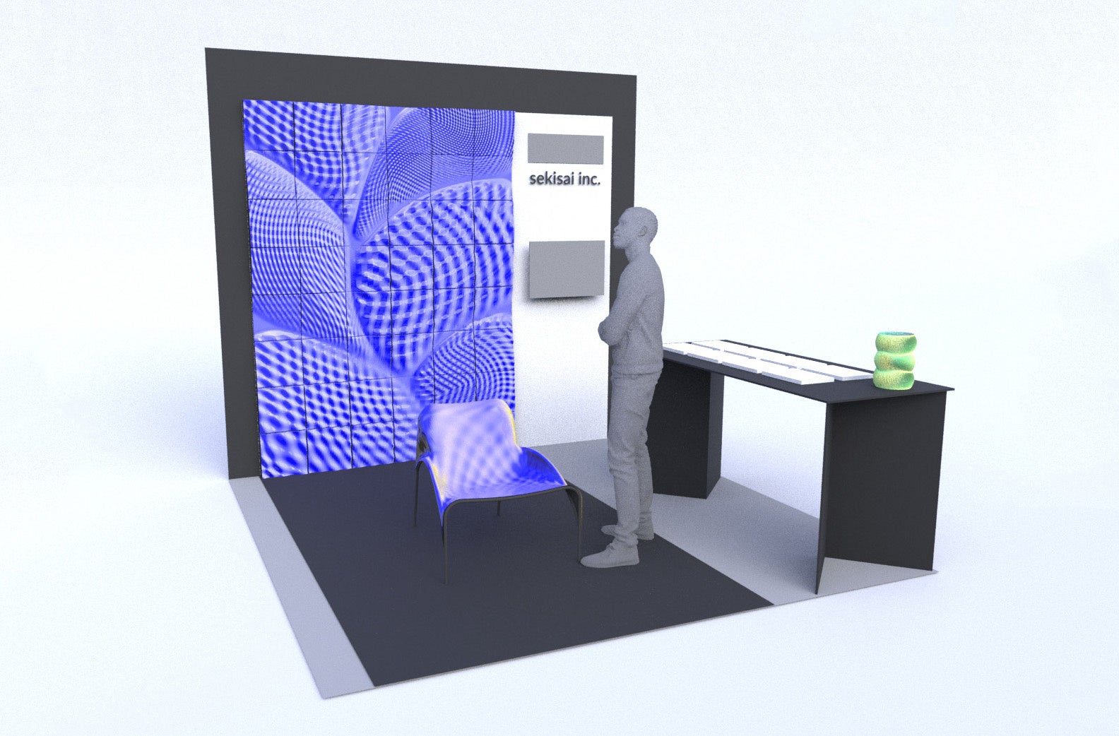 独自の3Dプリント技術を駆使して特殊な色変化を持つパネル材の量産体制を整え、空間スケールでの演出を可能としたタイリングシステムをインテリアライフスタイルのタレントブースにて展示いたします。