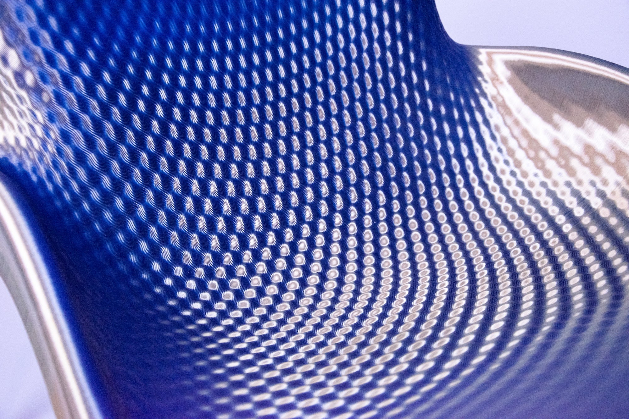 積彩は、独自に開発したトランスカラープリンティング(Transcolor Printing)技術を活用したパネルを展示します。このパネルは、3種類の異なる色材料を組み合わせながら3Dプリントされ、視点の変化によって色彩が変化する効果を魅せます。さらに、お客様の要望に合わせて、パネルの模様、サイズ、カラーを自由にカスタマイズできるため、個性豊かな装飾材を提供することが可能です。