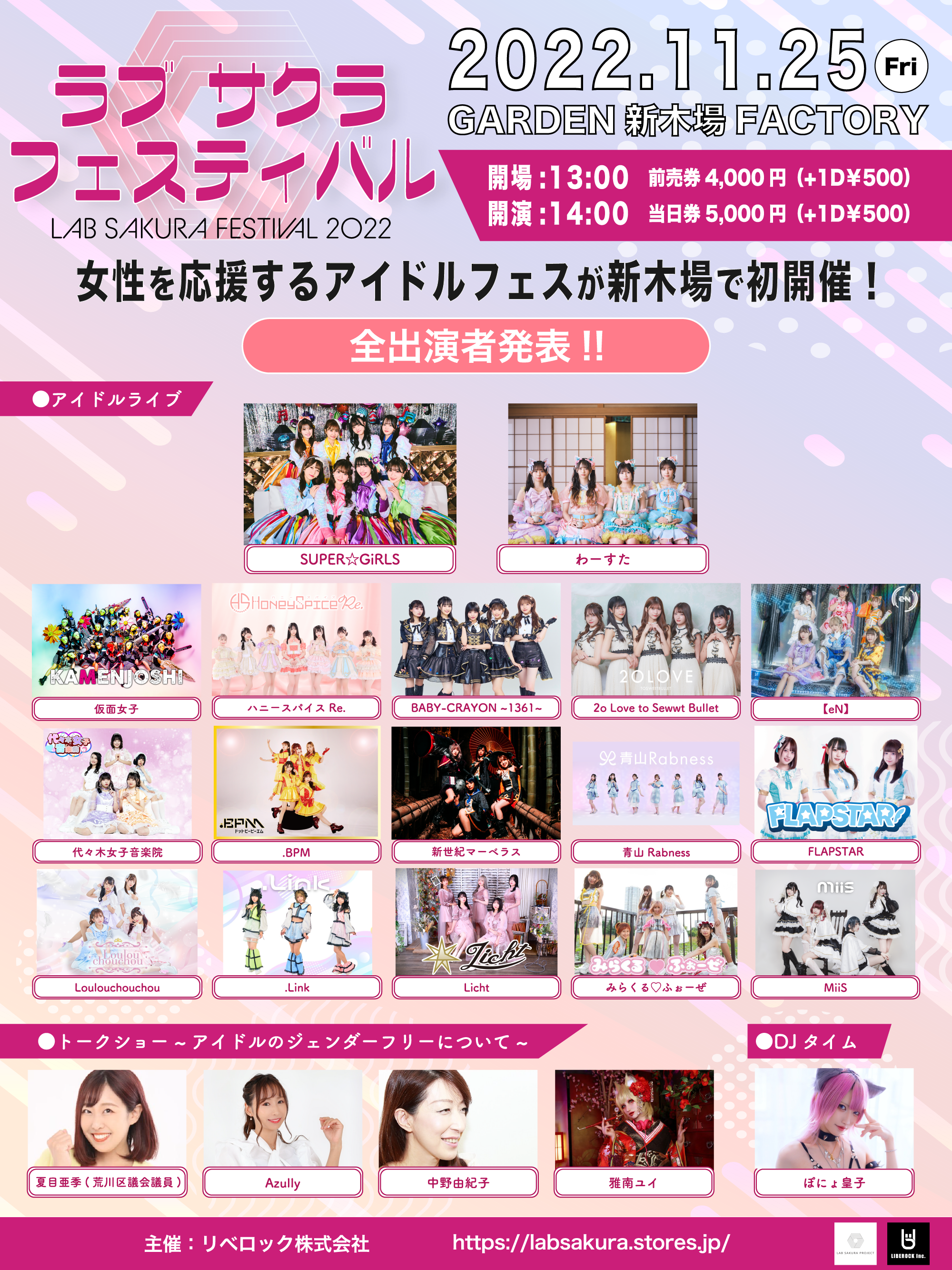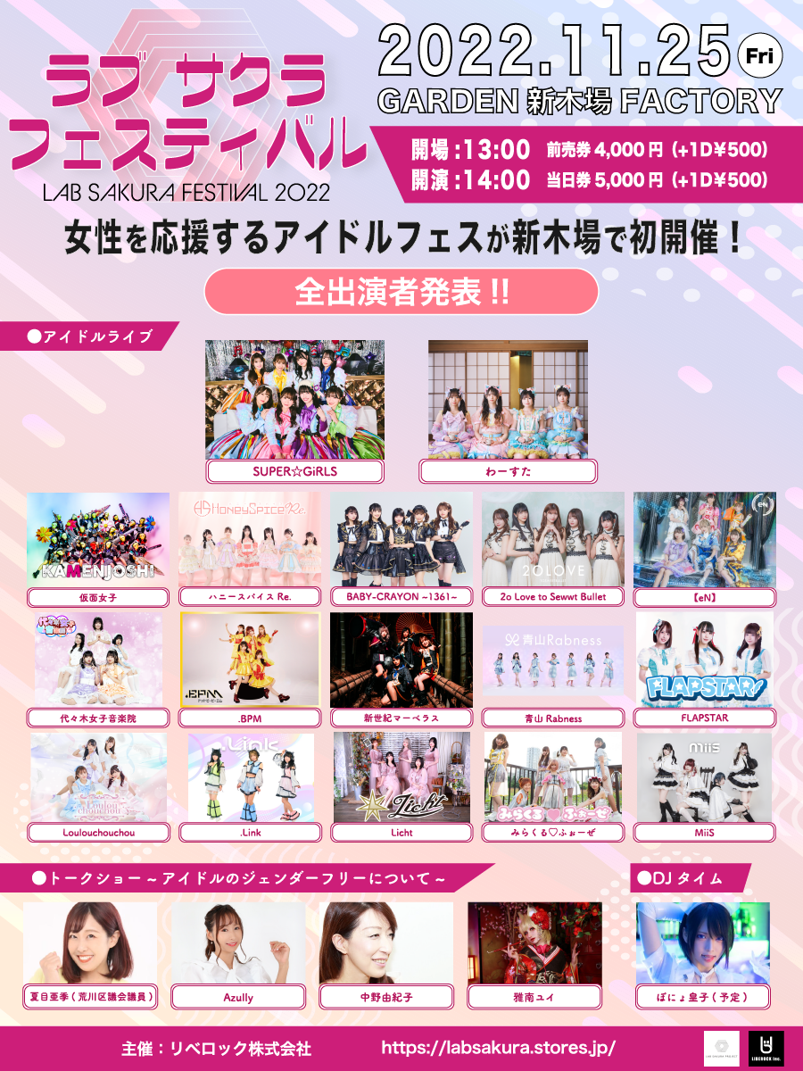11月25日『女性に対する暴力撤廃の国際デー』に開催!!女性を応援するアイドルフェス「LAB SAKURA FESTIVAL 2022」ついに全出演者発表!#ラブサクラフェス