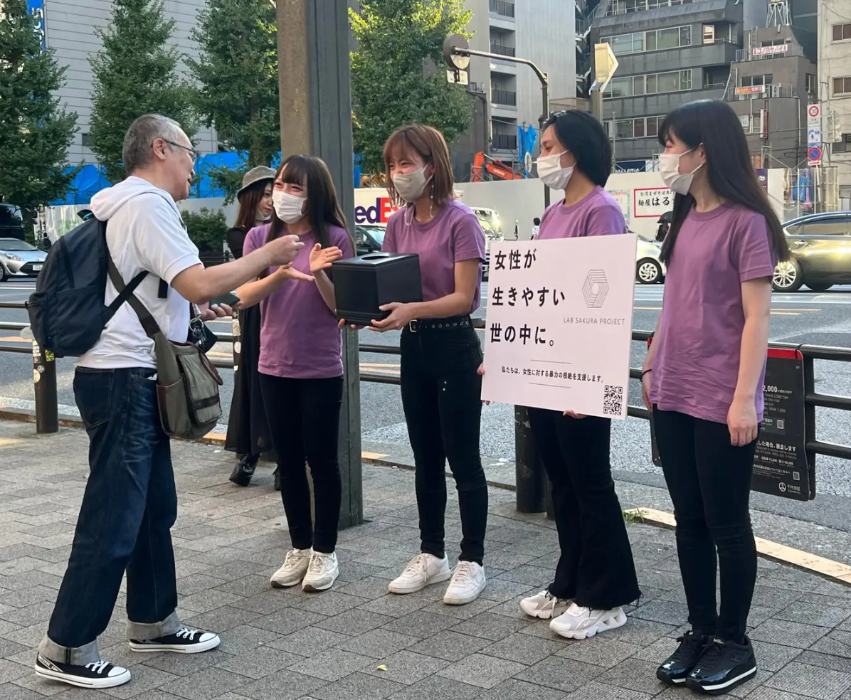 女性が安心して活躍できる環境を推進する活動として、メンバーによる街頭啓蒙活動・募金活動を行っています。