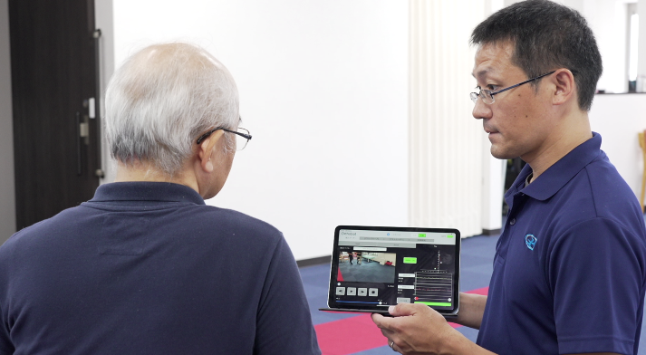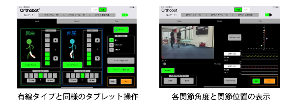 これにより、トレーナーが装着者から離れた位置でタブレット操作し、リハビリ指導を行うことが可能となる。