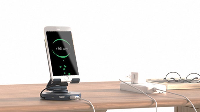 CIRHUB(サーハブ)は、8つのポートが搭載されたハブと、スマホ・タブレットスタンドが一体化した多機能ドッキングステーションです。方向・角度・高度調整可能で、さらに接続用のケーブルが本体に搭載され、別途用意の必要はなく、持ち運びも楽々。