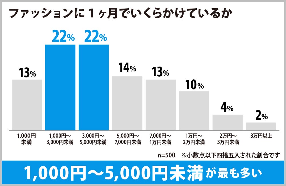 ●ファッションに毎月かけるお金は5,000円未満が多い