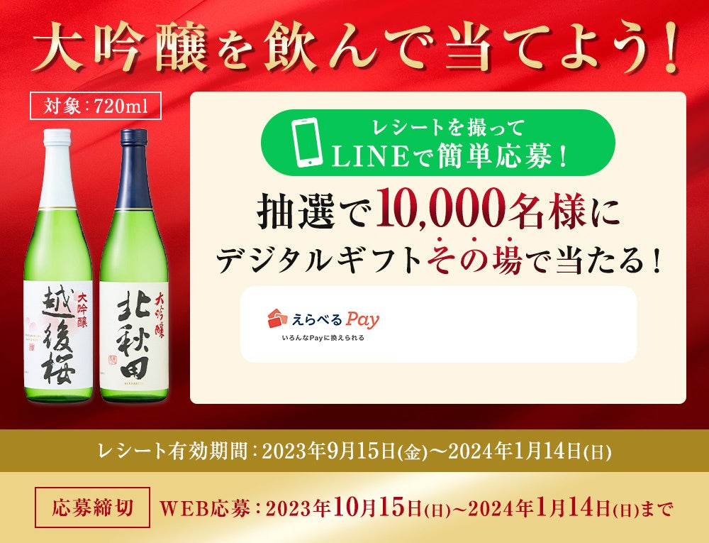 名称:大吟醸北秋田720ml・大吟醸越後桜720mlを飲んで当てよう!デジタルギフトプレゼントキャンペーン