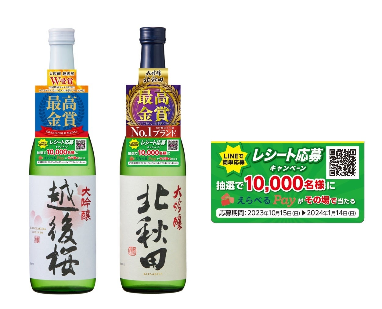応募方法:首かけ記載のQRコードまたは北鹿・越後桜酒造HP内にあるキャンペーンバナーよりキャンペーン特設ページに遷移し、LINEで弊社アカウントを友達追加ののちレシートをアップして応募。抽選結果は応募完了後の画面にて即時表示されます。