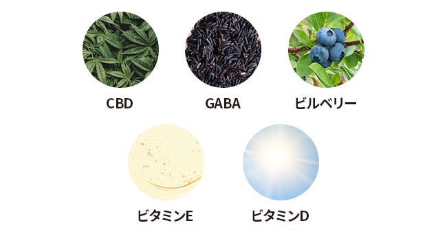 リラックスしながら気持ちよく日々を過ごしてほしいという想いから、マインドフルネスにいい人気の成分のCBDだけではなく、寝る前のくつろぎの時間をサポートするGABA、アントシアニンが豊富に含まれる高品質な北欧産ビルベリーエキス、イキイキとした健康づくりに必要な栄養素のビタミンE、外出機会が少ない方におすすめなビタミンDをMCTオイルをベースにバランスよく配合しています。