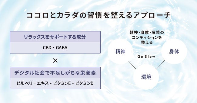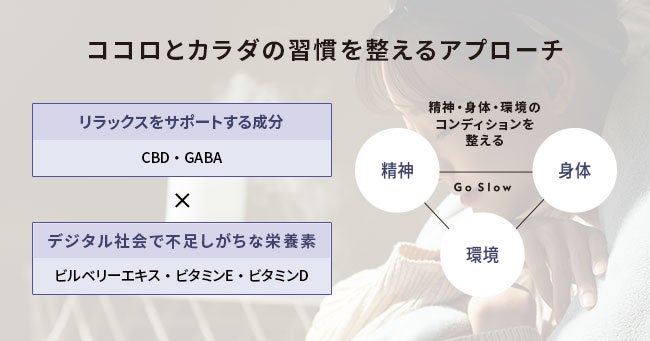 日常にスローを届けるウェルネスブランド!Go SlowからCBD配合『デジタルライフを整えるサプリメント』を2023年2月27日に販売開始!