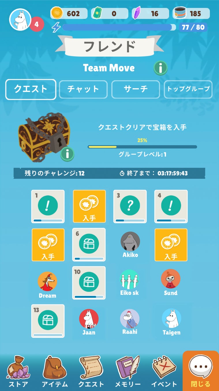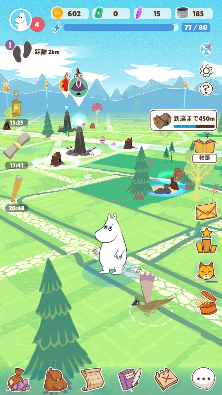 ムーミン谷ではたくさんのかわいい仲間たちと隠れた宝箱を探すことができます。