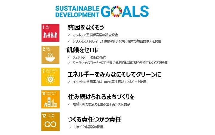 阿倍野地域の新たな冬の風物詩になることを目指し企画しました。テーマはSDGsです。長くこの阿倍野の地に根付くよう、環境に配慮し、社会や地域に貢献できるサステナブルなイベントです。100%再生可能エネルギーを使用し、収益の一部は海外の保育園設立資金に充当し、リサイクルや絵本無償提供によるクリスマスチャリティも実施します。