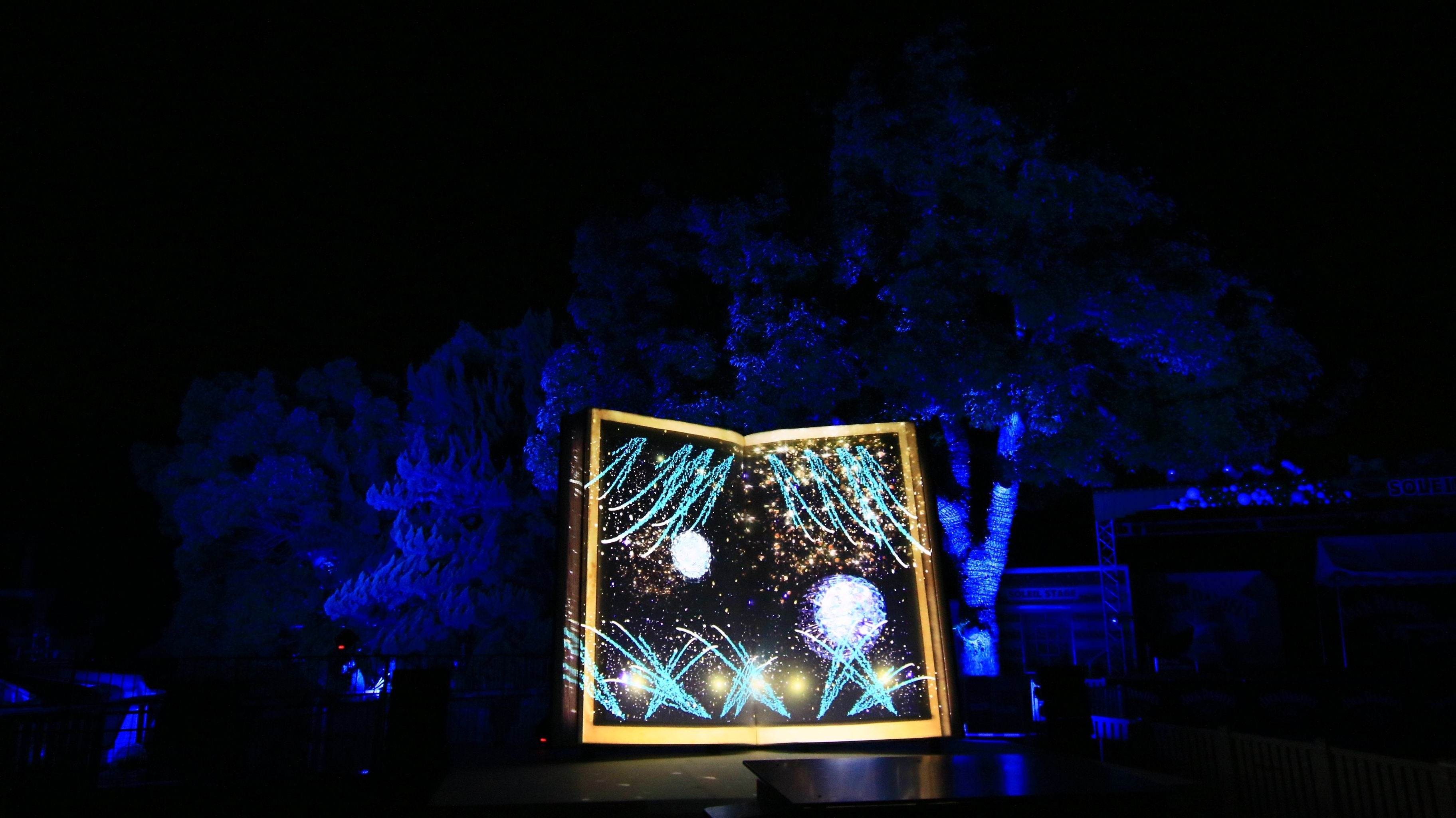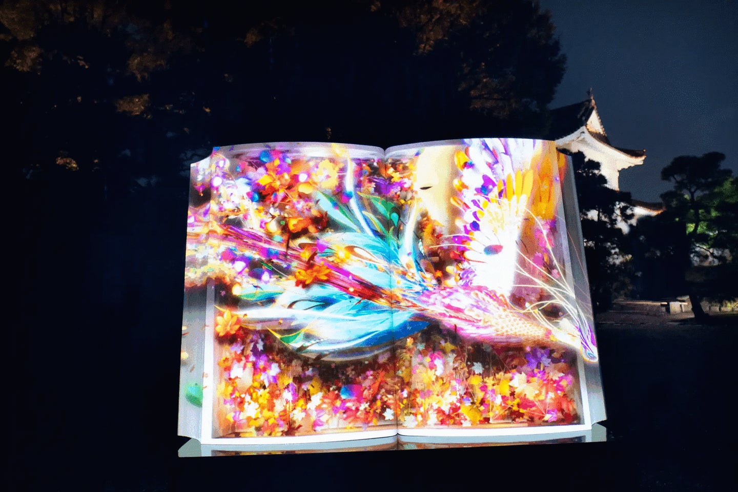 当校に2023年春から開設される「教育テックコース」が目指すこどもとテクノロジーをイメージしたシンボルモニュメント(NAKED BIG BOOK)を設置、大きな本のオブジェにまるでページがめくれるようなプロジェクションマッピング演出で、来場者をお出迎えします。また記念撮影のスポットにもなります。