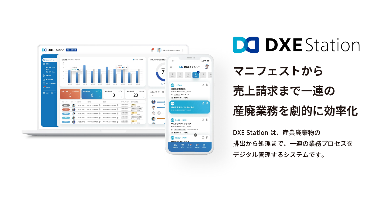 DXE株式会社は創業以来、「産業廃棄物処理をデジタルで効率化し、ムダな作業と環境負荷を減らす。」をコンセプトとして掲げ、電子マニフェストをもとに産業廃棄物処理業界の各事業者様をつなぐクラウドサービスを提供することで作業の効率化とムダのない業務連携を実現いたします。産業廃棄物処理業界は社会を支える大切な存在です。弊社が目指しているのは、産業廃棄物処理の各事業者様をデジタルで連結し、インフラとしてより効率的に進化させること。それは、あらゆる経済活動について回る廃棄物を処理する際の環境負荷を減らすこと、ひいてはサステナブルな社会づくりにもつながります。弊社のアイデアはまだまだ進化中です、さらなるサービス拡充にぜひご期待下さい。