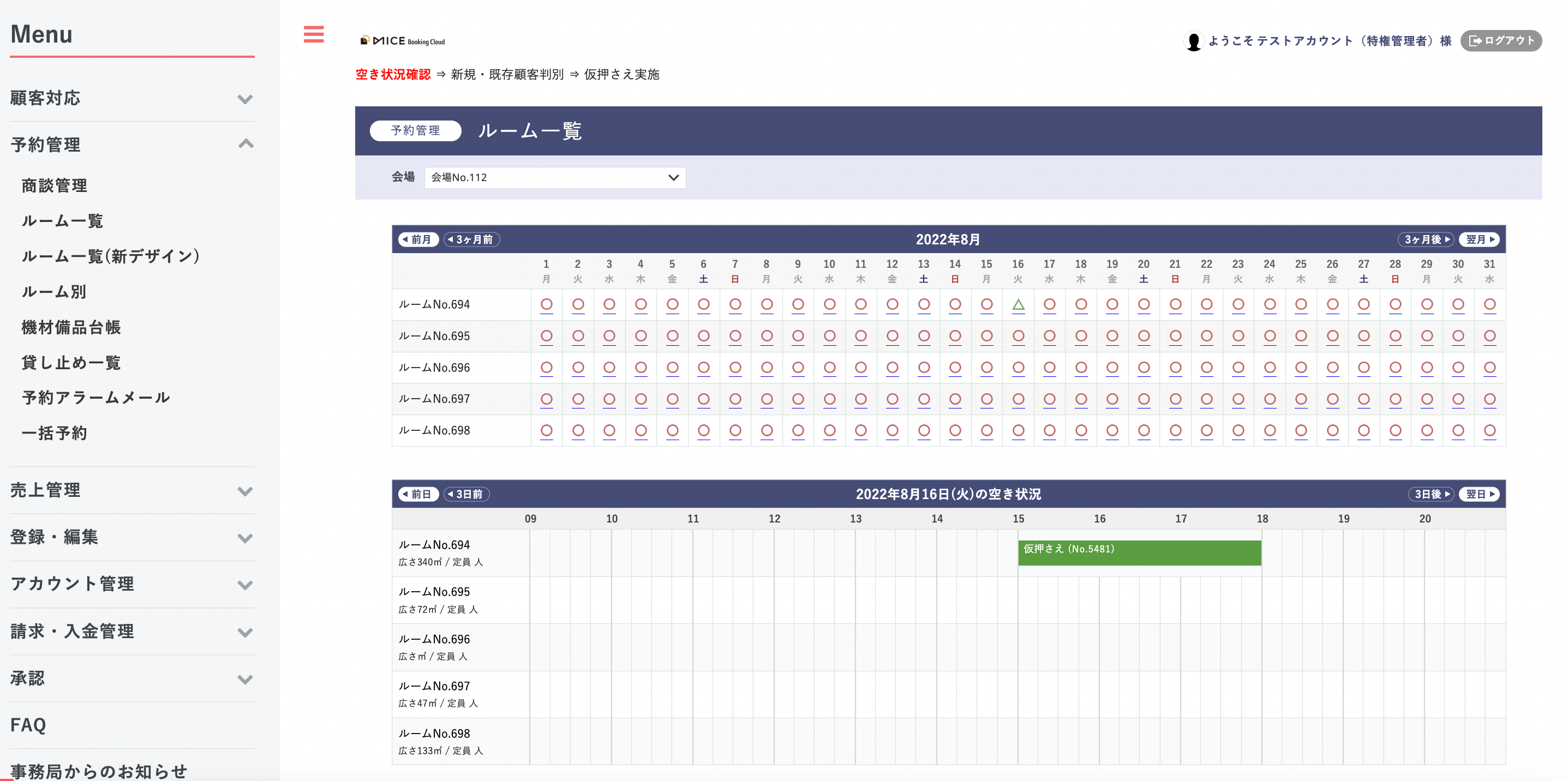 4.「MICE Booking Cloud」上にルーム情報を掲載
