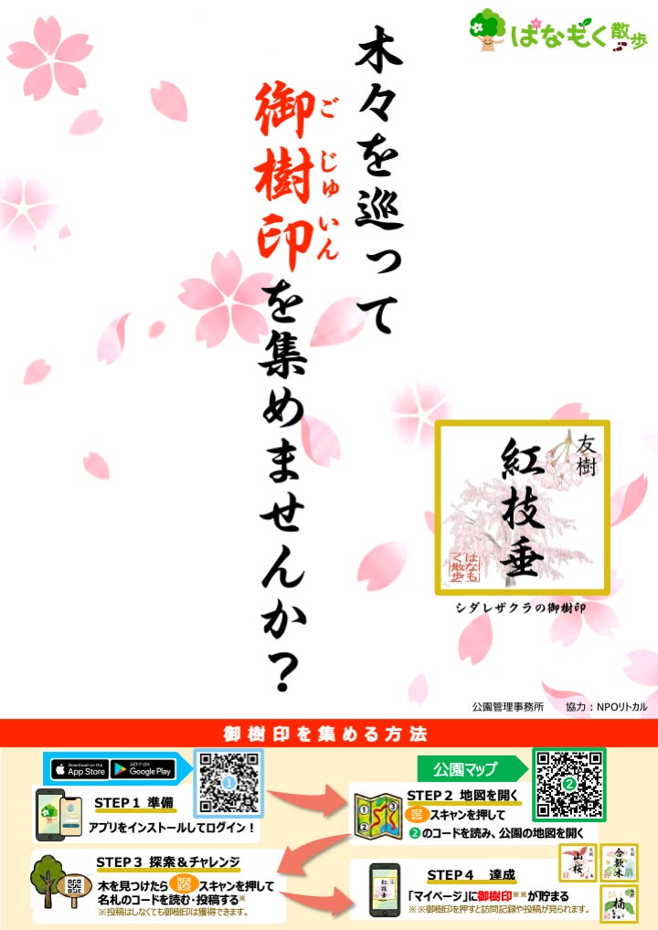 ※「御樹印」集めは、はなもく散歩が導入されている全公園で楽しむことができます。