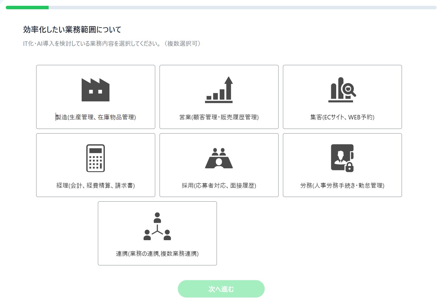 表記に従って、改善したい業務や必要な機能を選択