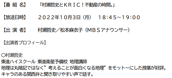 【番組名】 「村瀬哲史とKRIC!不動産の時間。」