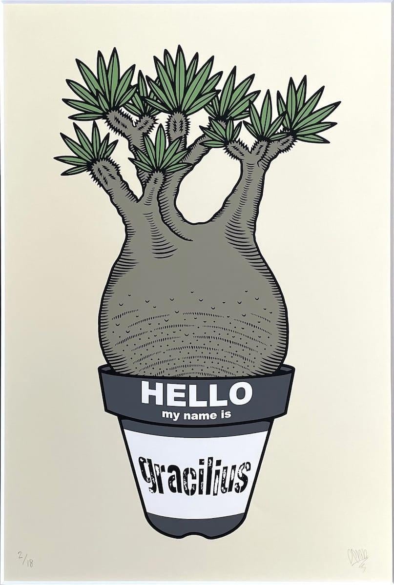 自身が経験し影響を受けてきたグラフィティやスケートボードなどのストリートカルチャーをルーツに、ライフスタイルの中心となっている植物を融合させた作品を制作している。