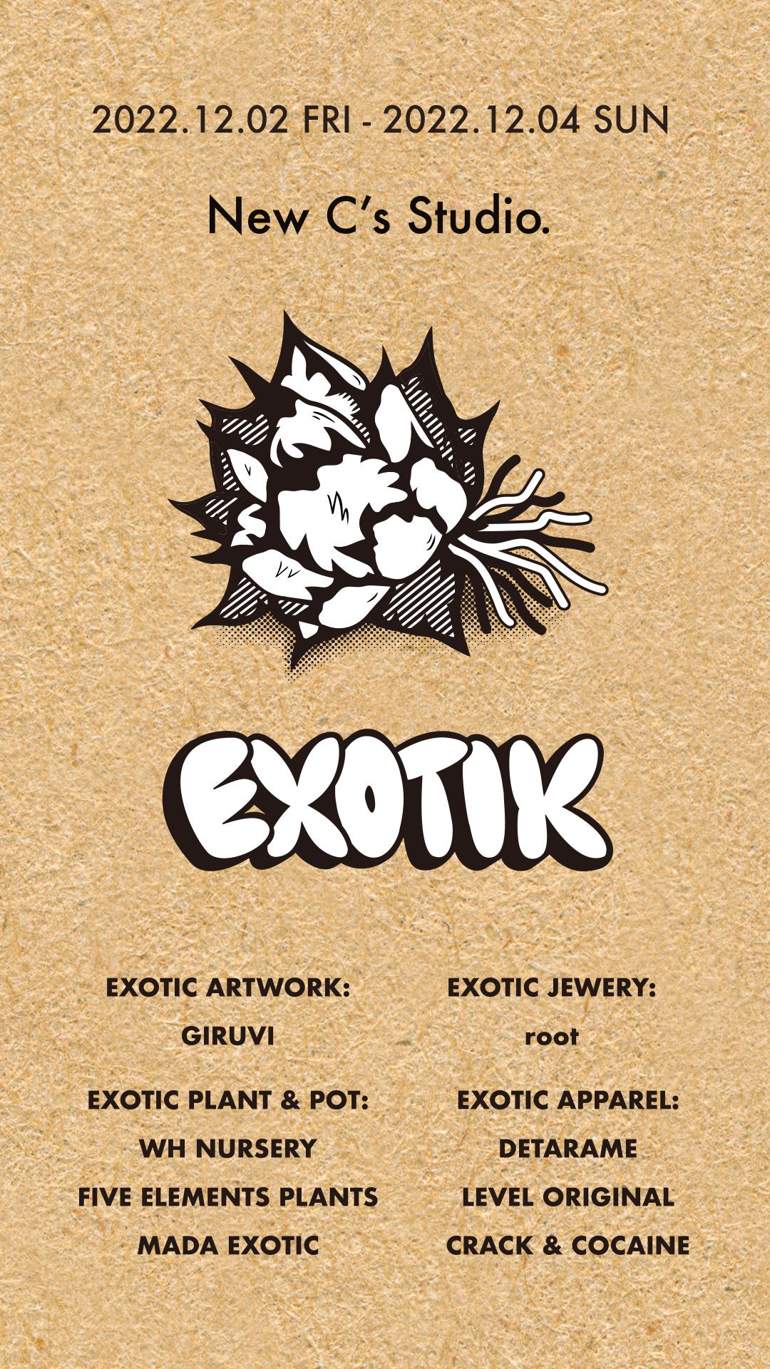 また、12/2(金)から12/4(日)までの3日間は、台湾をバッグボーンに持つアガベ栽培家 WH NURSERY、名古屋の塊根屋 MADA EXOTIC、独創的なオリジナル鉢を提供する Five Elements Plantsらを迎え、New C’s Studio.が新しく展開する植物プロジェクト ”EXOTIIK” のポップアップイベントも同時開催されます。