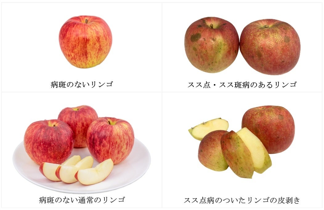 特別栽培認証の取得は失敗しましたが、今回多く発生してしまったスス点・スス斑病のりんごは通常のりんごと果肉や味は変わりません。ただ、見た目の問題からスーパー等に並べることは出来ません。こちらのりんごは今回WEBショップの方で、ジュース用りんごとして販売いたします。生食だけでなく、ジュースやスムージー、お菓子作りにもお使いいただけます。