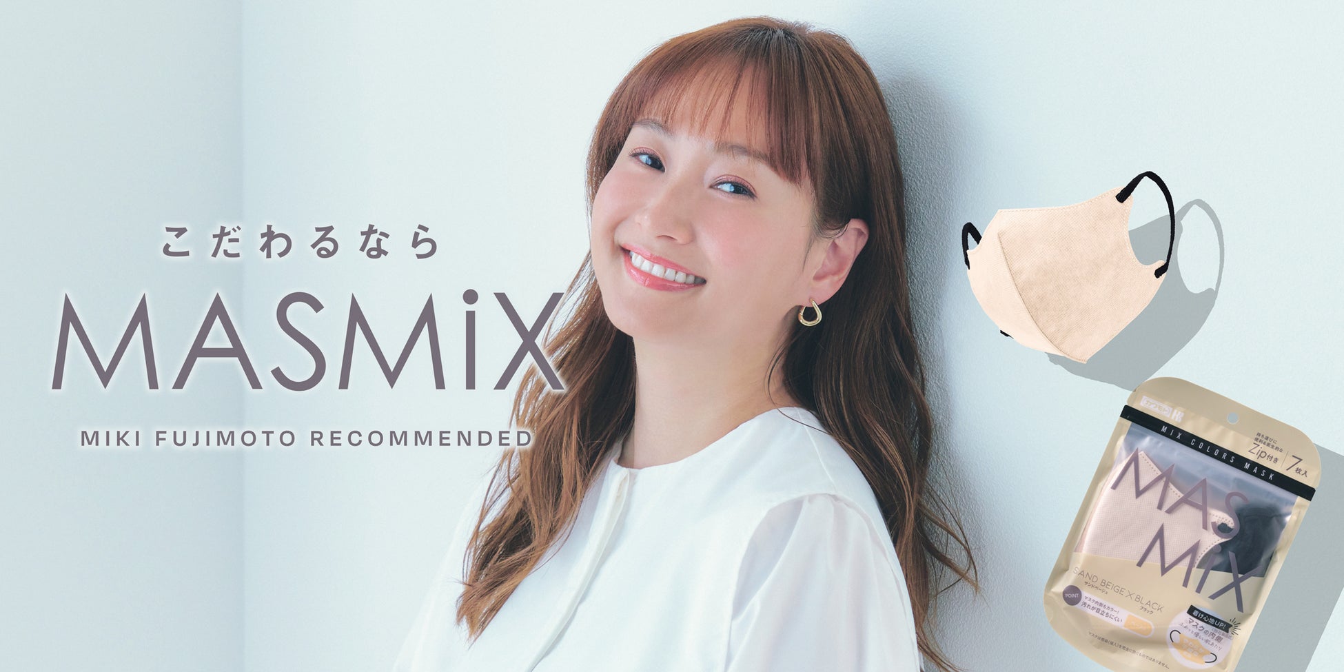 藤本美貴さんに『MASMiX』のイメージキャラクターに就任いただき、3年が経過しました。コロナ禍が収束した今、マスクは感染症対策の必需品としてだけでなく、ファッションアイテムやすっぴん隠しのツールとしても定着し、日常生活と切り離せないものとなりました。そんな中で『MASMiX』は、豊富なカラーバリエーションを有し、おしゃれアイテムとしてその日の服装や気分に合わせたコーディネートを可能としています。また、新発売の『MASMiX Smooth』は、内側なめらかすべすべ加工で、さらっと優しい肌あたりを実現した、『MASMiX』としても新たな挑戦となる製品です。