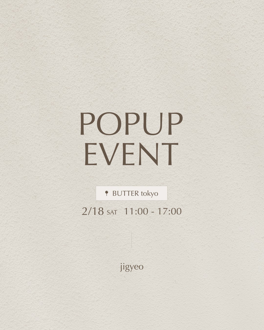 これまではオンラインの販売のみでしたが、今回1周年というタイミングで、直接商品を手に取っていただける場所と、jigyeoファンのみなさまに直接感謝をお伝えする機会として、渋谷にてPOPUPイベントを開催する運びとなりました。