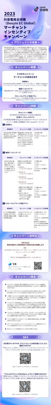 プラットフォーム上でマーチャントがより効果的に成長を加速し、国境を越えた消費のチャンスをつかめるよう、プラットフォームではマーチャントグループごとに3つのインセンティブ制度を実施します。この新規マーチャント対象の「新規店舗インセンティブ」、一部の業績の急速な成長が期待される既存マーチャント対象の「急成長インセンティブ」、および抖音電商全球購(Douyin EC Global)に出店しているすべてのマーチャント対象に業績の急成長達成を奨励する「ブランドアクセラレーションプラン」を通して主力マーチャントのコスト削減と効率化を促進し、プラットフォームでの成長を支えます。