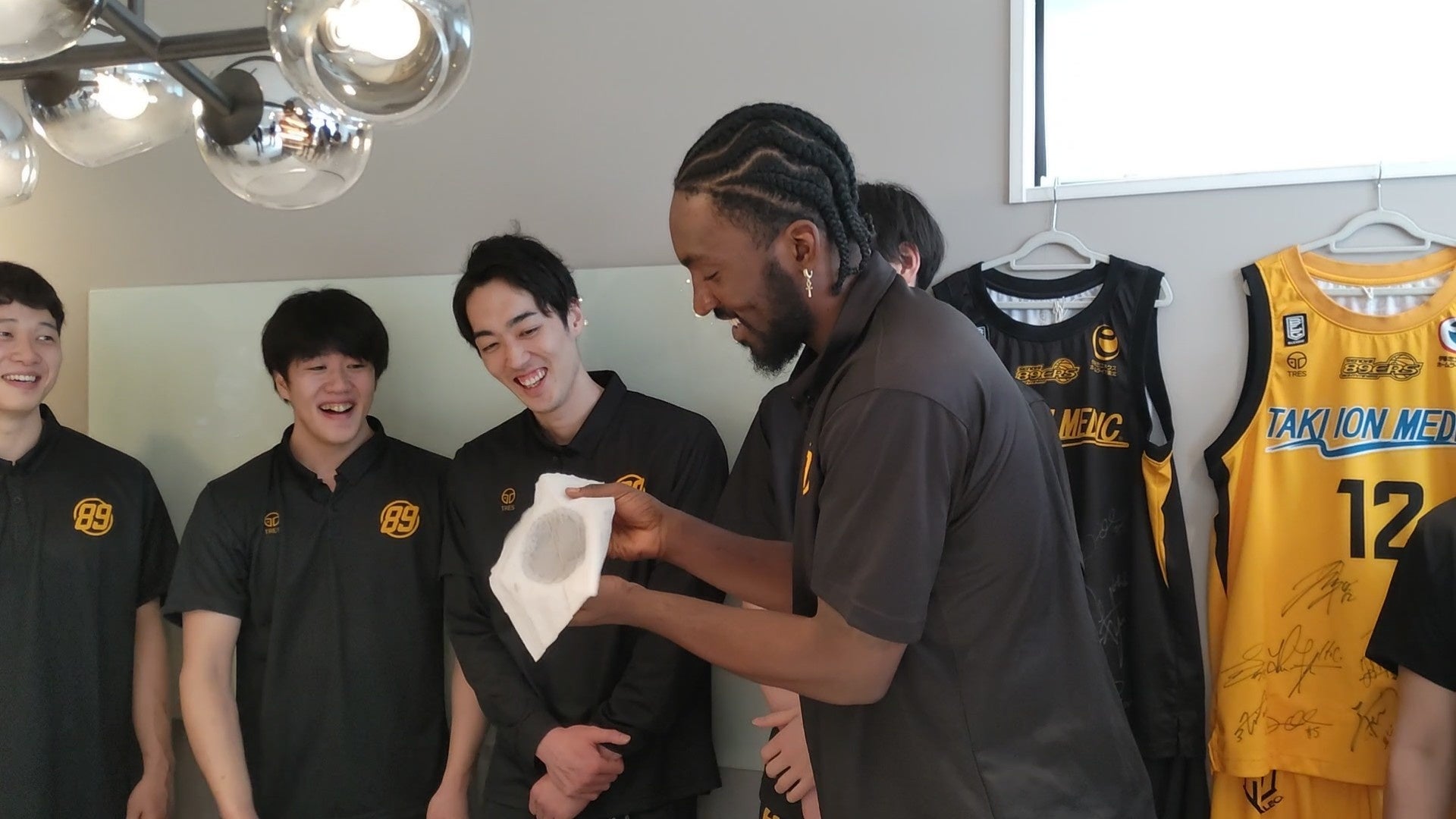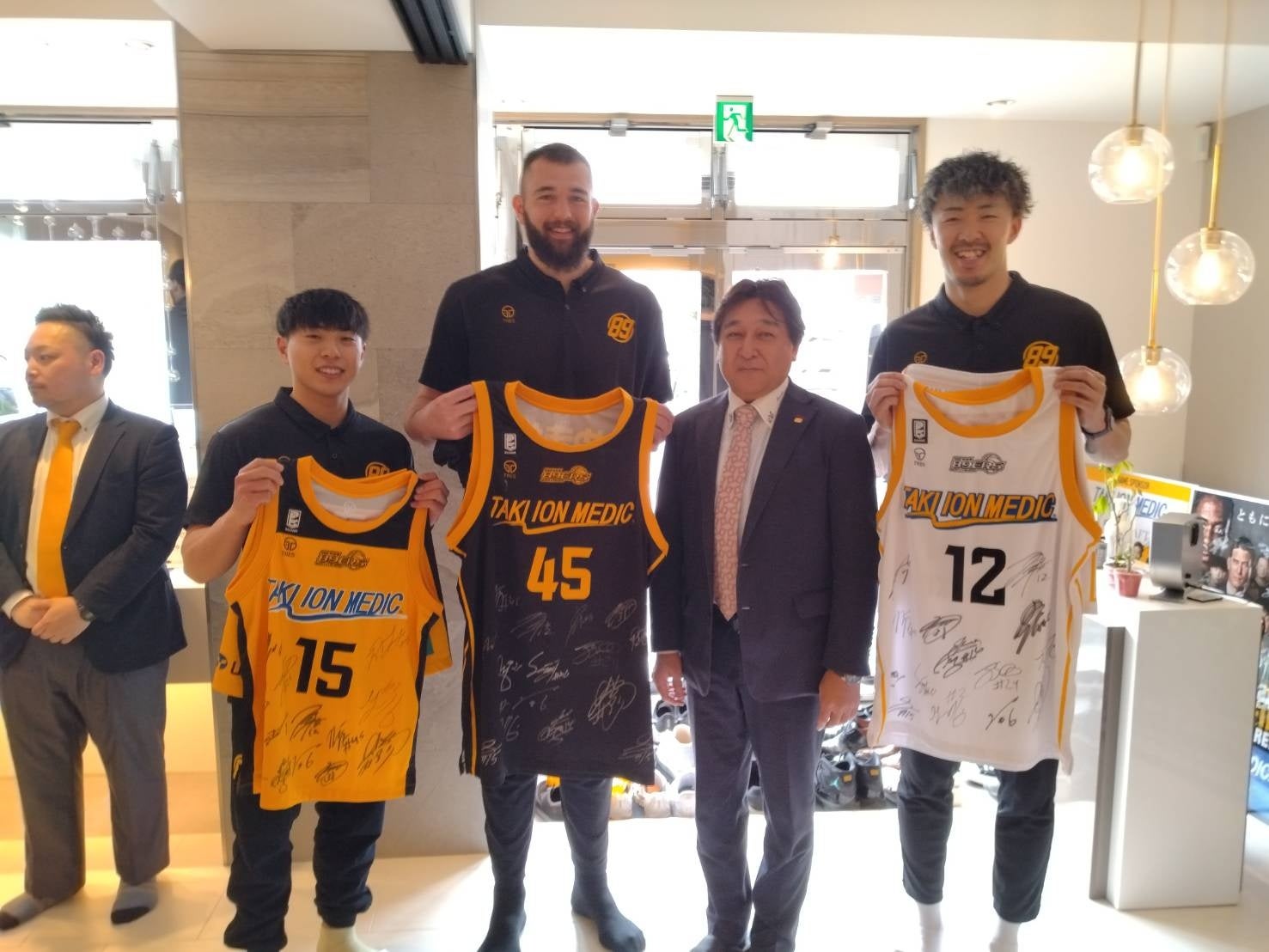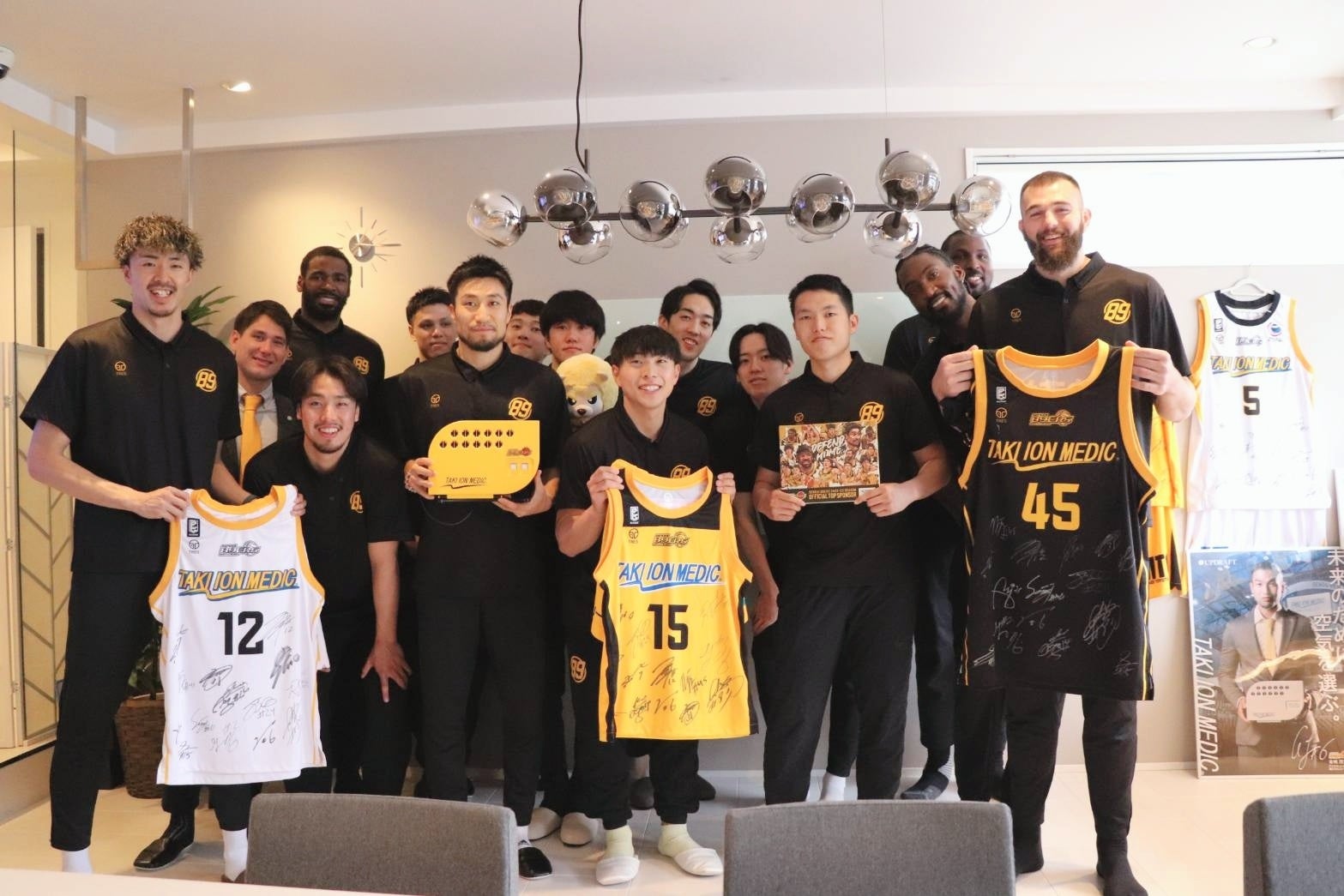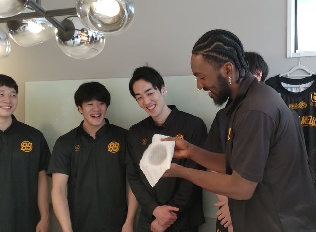 また、普段からご愛用いただいているジャスティン・バーレル選手(#24・PF/C・キャプテン)は、TAKI ION MEDICの導入をご家族からも大変お喜びいただいているお話と、併せて日常のお手入れについてのご質問があり、当社代表がレクチャーをさせていただきました。