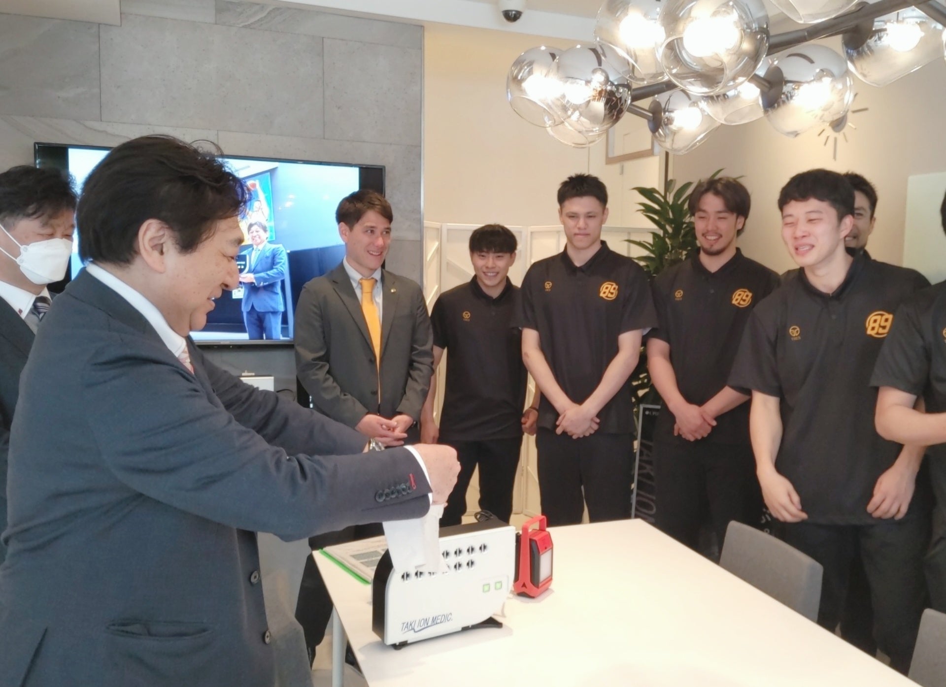 通算3期目のトップスポンサーではありますが、選手の皆さまのなかにも「TAKI ION MEDIC」について詳しくはご存知ない方もいらっしゃると考え、当社代表がご挨拶の後デモンストレーションを実施。