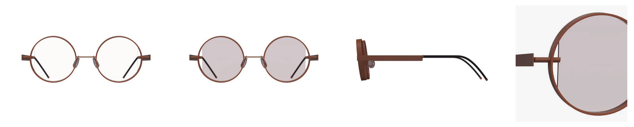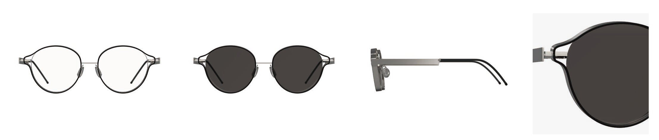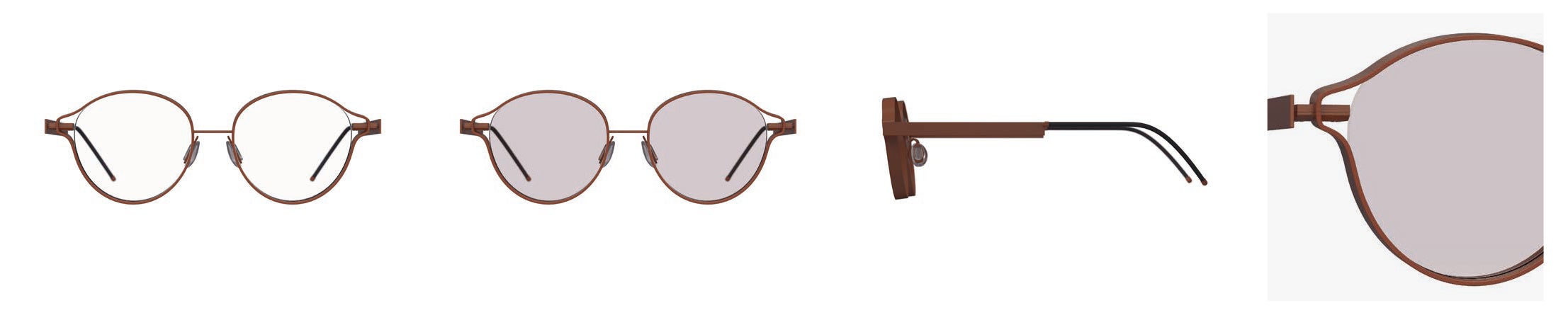 正面から見えるフレームの線によるスッキリとした表情、側面から見える6mmのフレーム幅による無骨な物質感。その特徴を色分けで表現したデビューモデルから一変して、今回のラインナップはフレームの小口、面、そしてテンプルに至るまで、単色で統一することにより、「TWO FACE」独自の造形がよりスッキリと浮かび上がる仕上がりとなりました。
