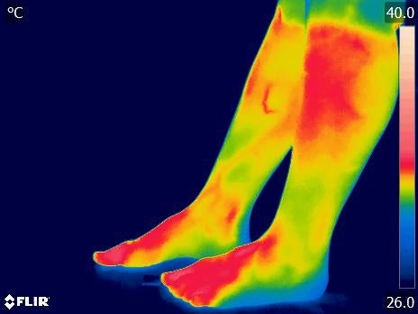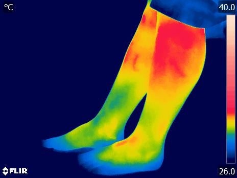 ※試験環境に30分座位安静状態の後、サーモグラフィ撮影を実施。その後試験飼料の靴下を着用し、