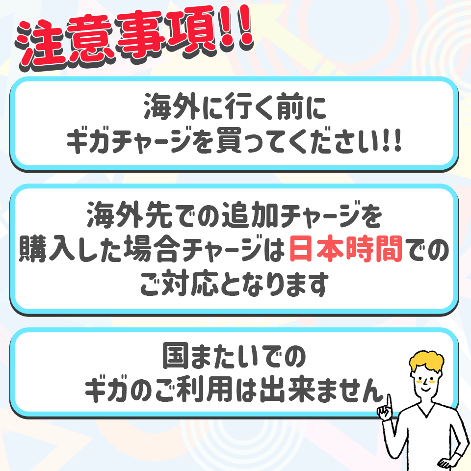 - 海外先での追加チャージを購入した場合チャージは日本時間でのご対応となります。