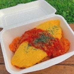 会場の一角にサステナブルなキッチンカー4台が集結。「福島県産牛串」「福島県産野菜のミネストローネ」「福島わかももクレープ」など地元の食材にこだわった魅力的なメニューが並びます。会場の一角にイートインコーナーを設置し、家族みんなで楽しく味わえます。