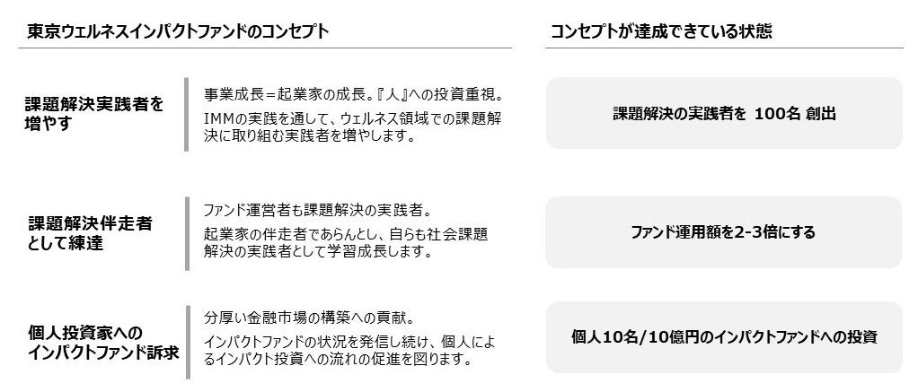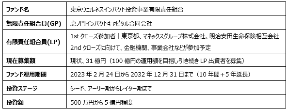 | ファンド名 | 東京ウェルネスインパクト投資事業有限責任組合 |