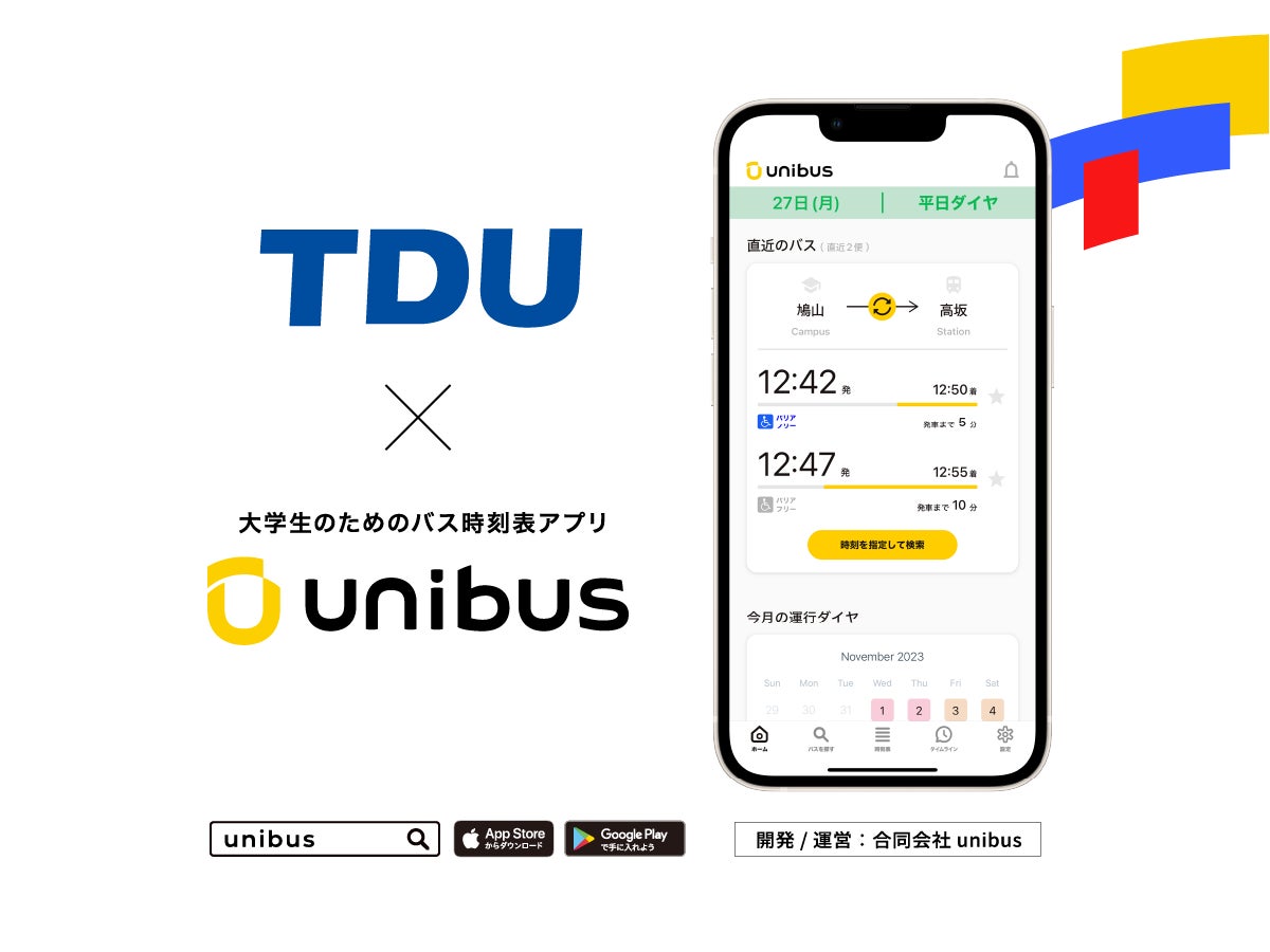 バス時刻アプリ「unibus」と東京電機大学 埼玉鳩山キャンパス、スクールバス時刻表更新業務に関する委託契約を締結。