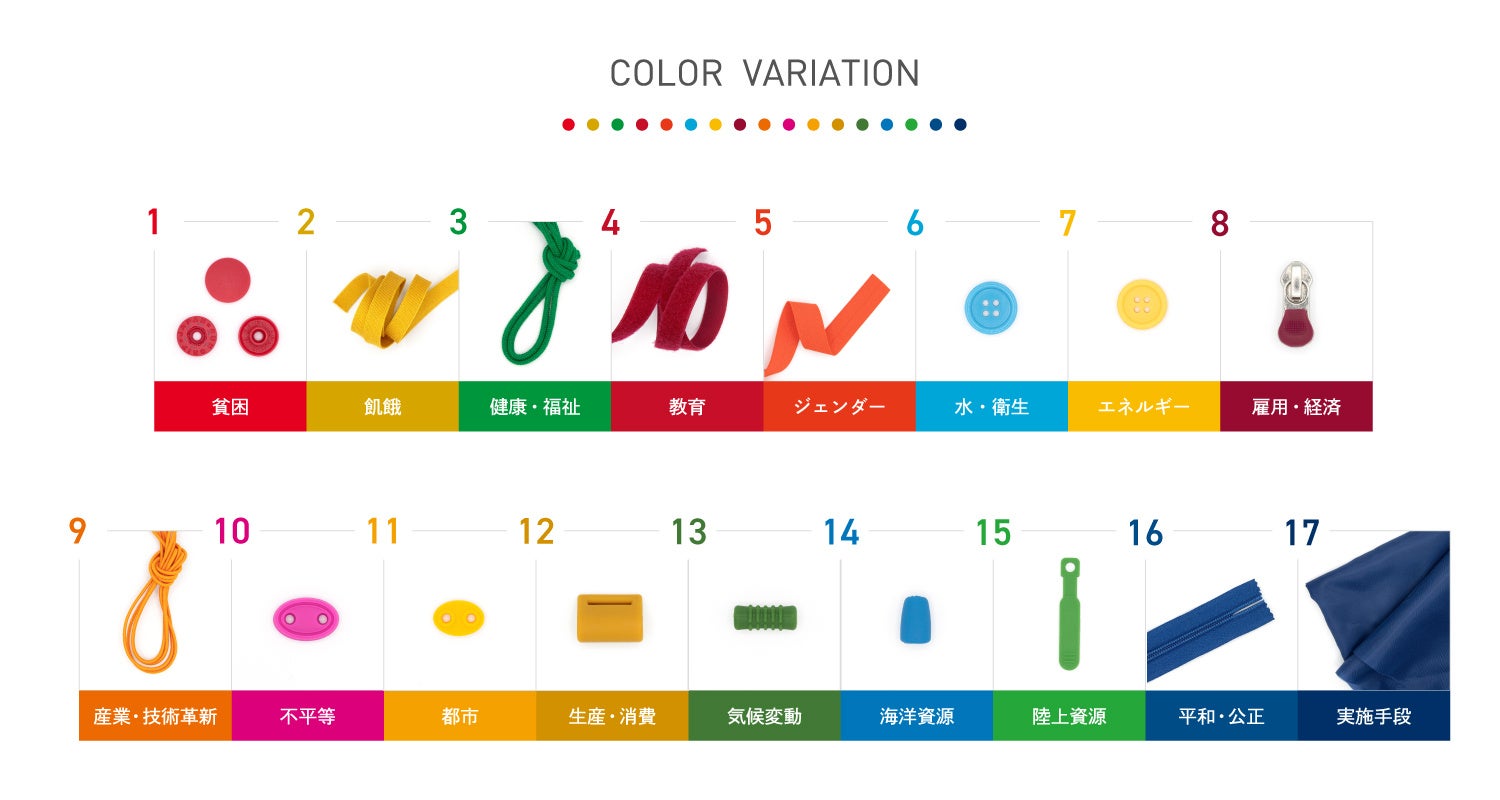 認知度向上にも一役!SDGs17ゴールのカラーを洋服パーツでおしゃれに表現