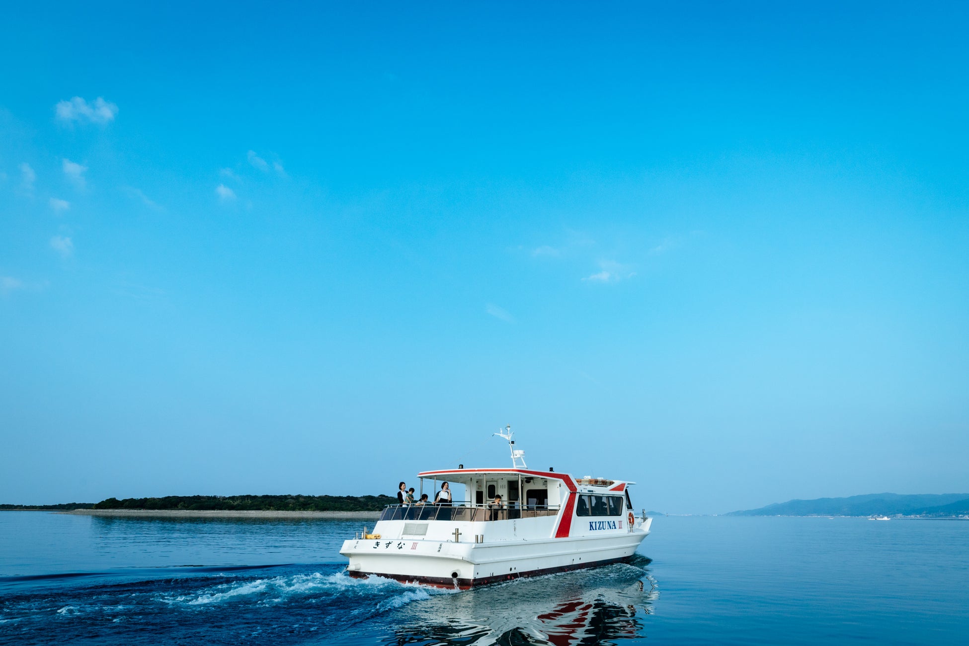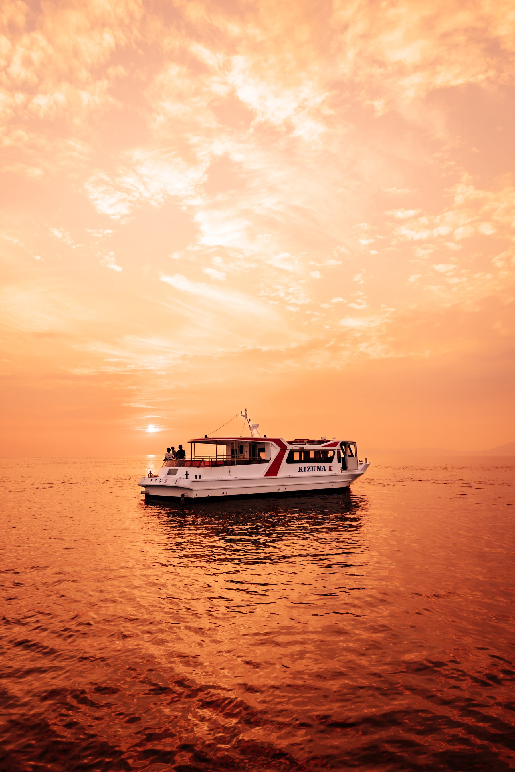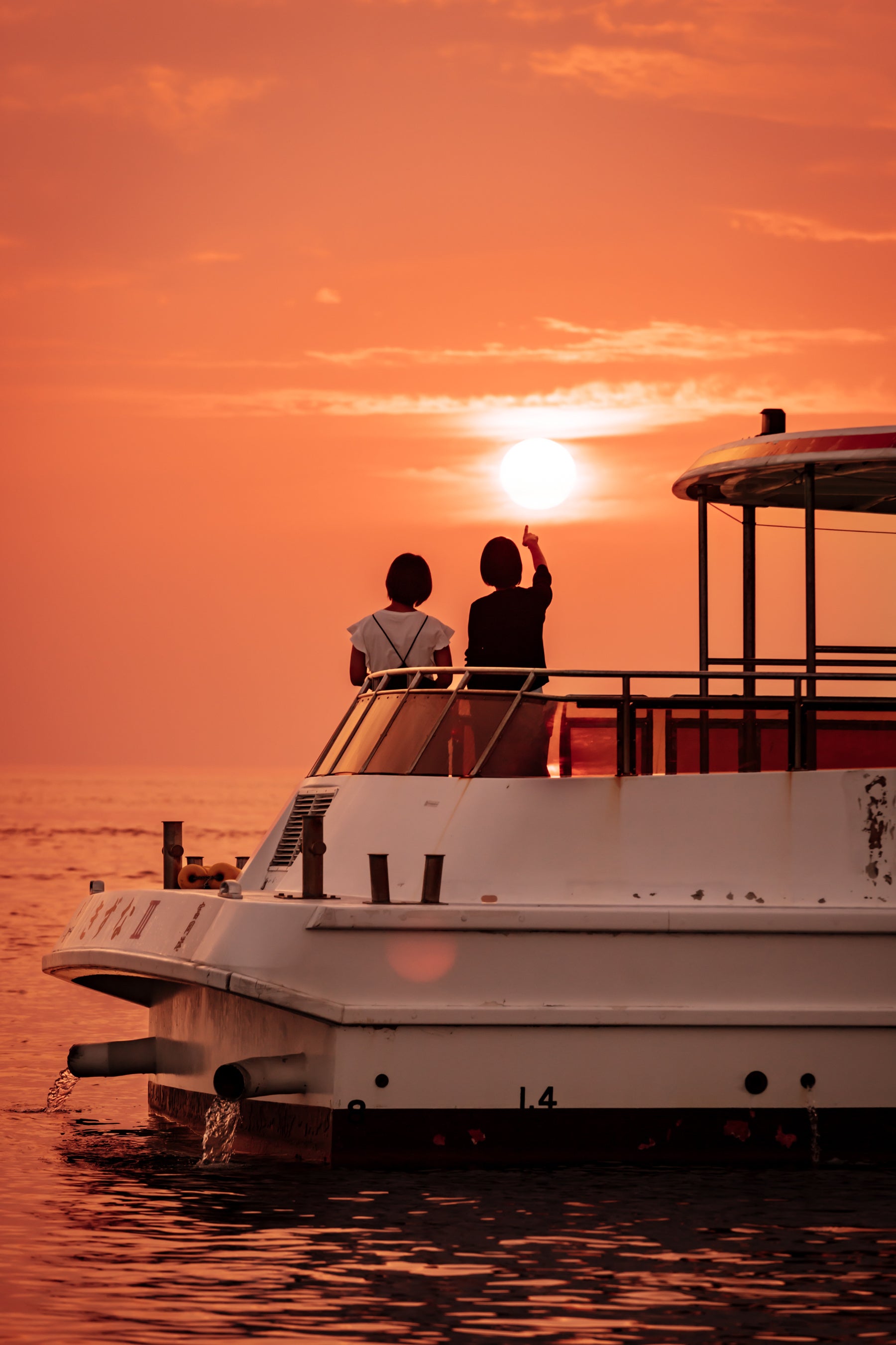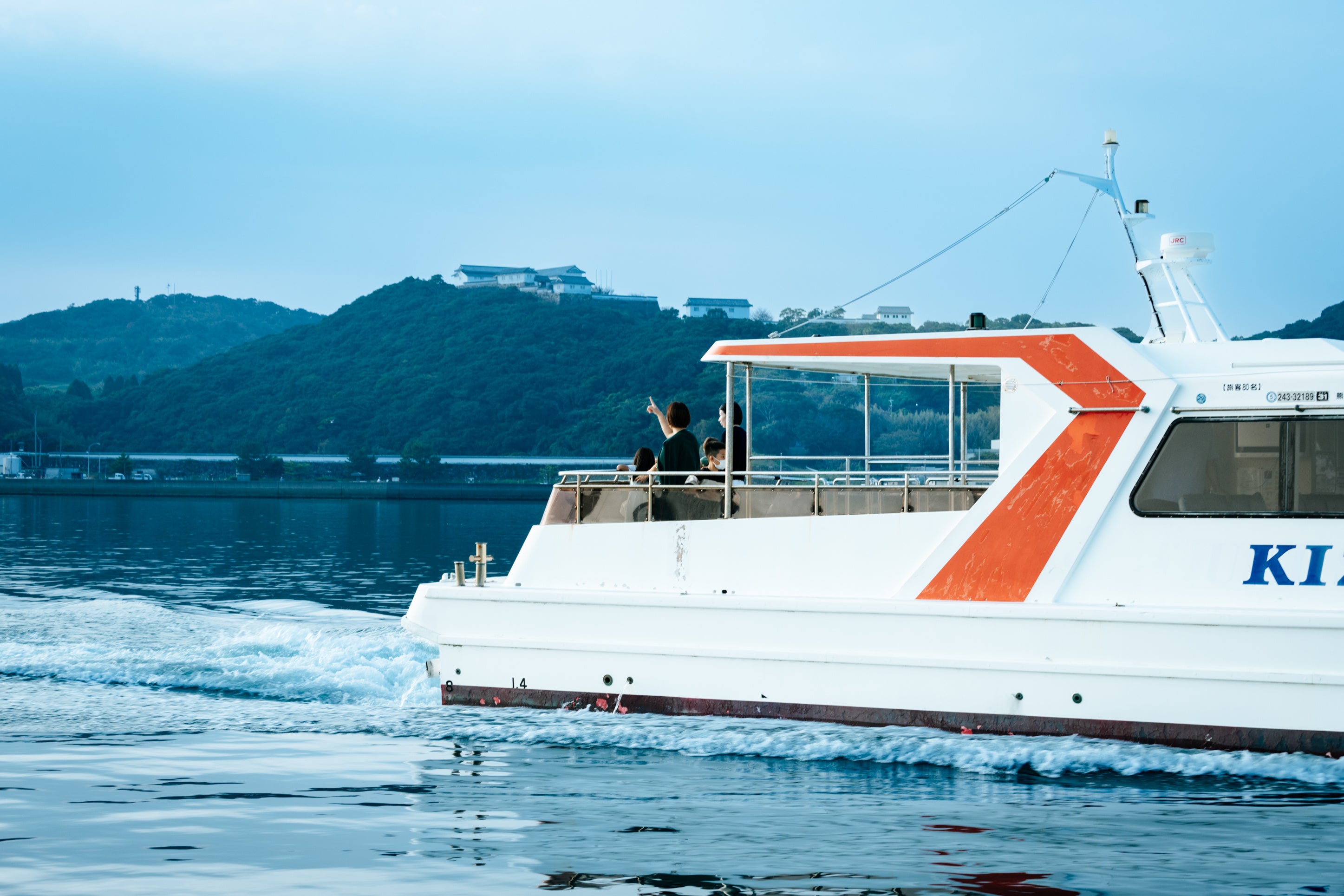 天草西海岸サンセットラインの起点となる苓北町は、天草灘に沈む夕日を観光の目玉としてこれまでもPRしてきました。そしてこの度新たに、苓北町・富岡港と長崎市・茂木港を結ぶ定期船の代替船「KizunaⅢ」を活⽤し、陸からだけで なく海からも⼣⽇を堪能でき、さらにダイナミックな富岡半島の絶景を体感できる⾮⽇常的な体験型プラン「天草灘サン セットクルージング」を開発しました。⼣⽇に照らされて移りゆく海の上で、茜⾊に染まる空と⽔⾯に包まれながら贅沢なひと時をお過ごしいただけます。使用する「KizunaⅢ」は小さなお子様や高齢の方々も安全に乗船していただける旅客船。オープンデッキで潮風を感じながら、快適なサンセットクルージングを楽しめます。