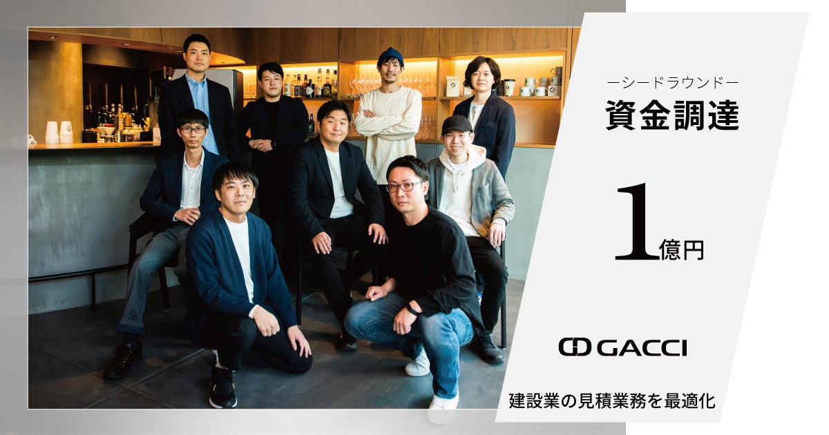 建設テックの株式会社GACCI(本社:鳥取県鳥取市、代表取締役:若本憲治、以下、GACCI)は、シードラウンドで、デジタルガレージグループの株式会社DGベンチャーズ(本社:東京都渋谷区、代表取締役会長 兼 社長:林郁)とOpen Network Lab・ESG1号投資事業有限責任組合(通称:Earthshotファンド)を引受先とする第三者割当増資により、1億円の資金調達を実施しました。また、GACCIが開発する、建設業の煩雑な見積業務を最適化するプロダクト「GACCI(ガッチ)(https://gacci.jp/)」の提供を開始します。