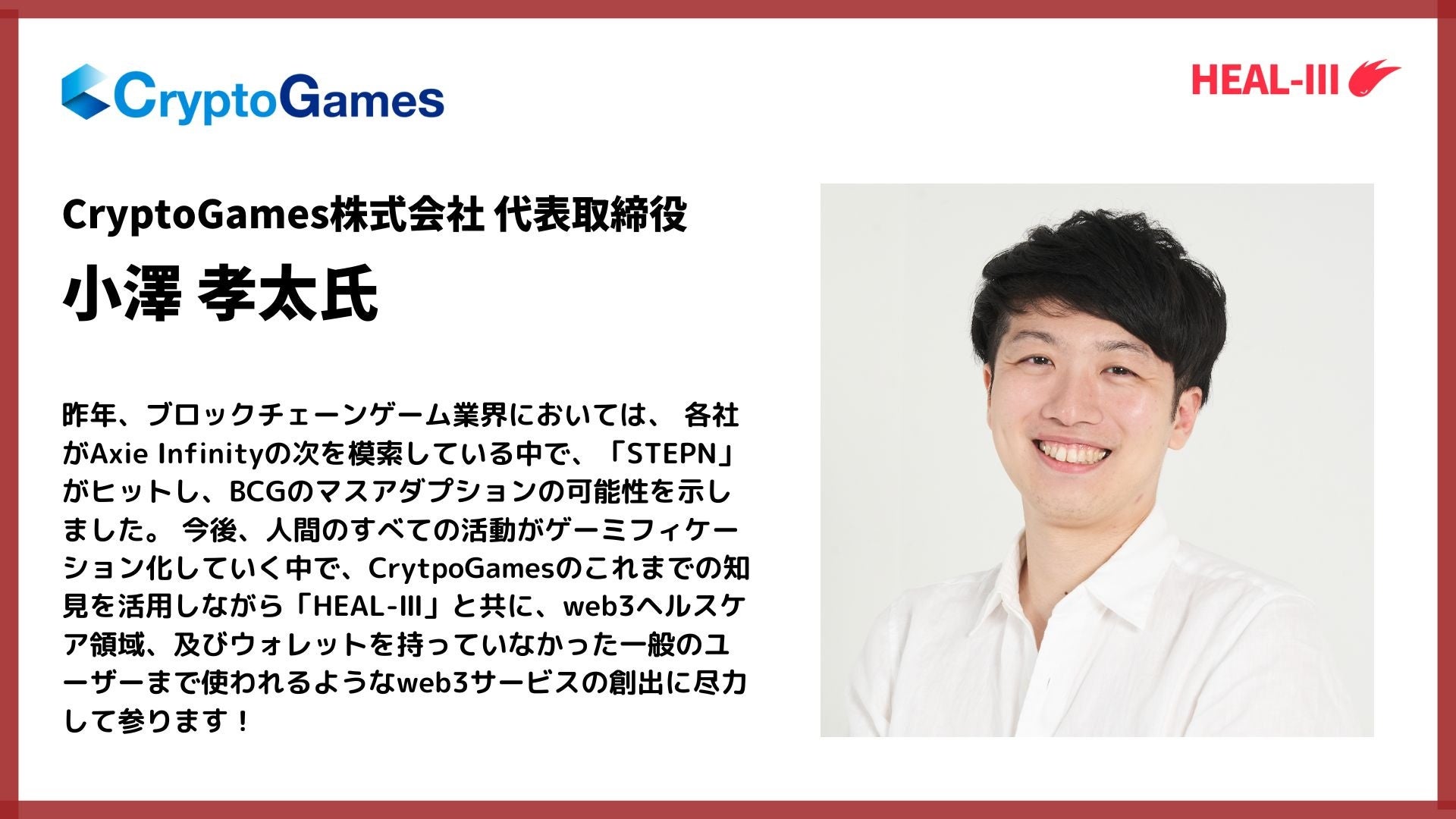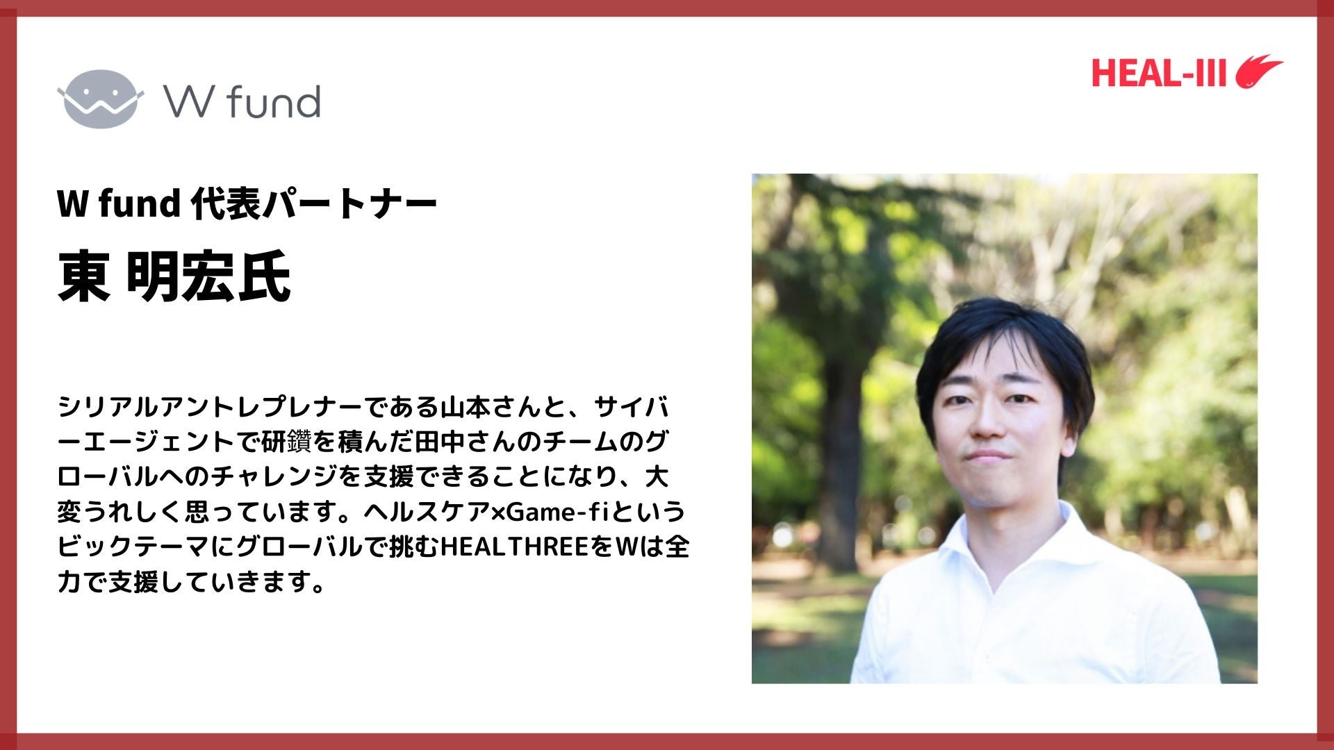今回の資金調達により、「HEALTHREE」を基盤とした経済圏の構築における、基盤ゲームの実装及びMissionやStore機能の拡充、またトークンの上場や上場後のサステナブルな成長における体制構築を行います。