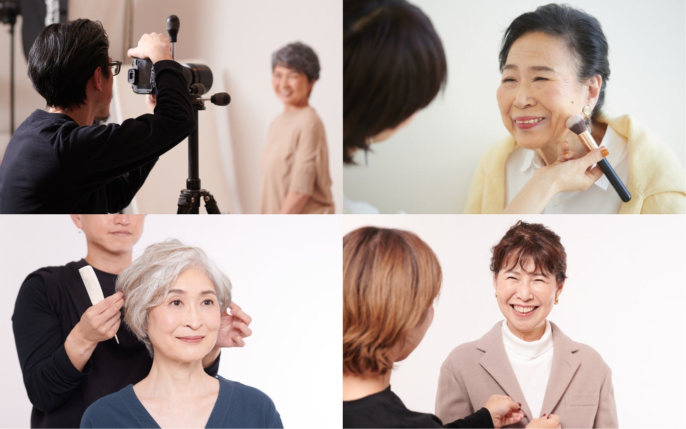 50 歳以上を含めシニア世代の女性をメインターゲットに、お客様にヘアメイク、ファッションスタイリング、ネイル・ハンドケアを施した上で、写真撮影のサービスを行っています。