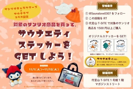 レトロでかわいい!サンリオキャラクターズのサウナグッズが新登場。代官⼭ 蔦屋書店内で期間限定販売!&「フォロー&リツイートキャンペーン」開催決定!11月1日(火)~15日(火)