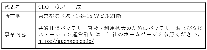 特記事項:国内唯一の二輪車向けバッテリーシェアリング事業会社