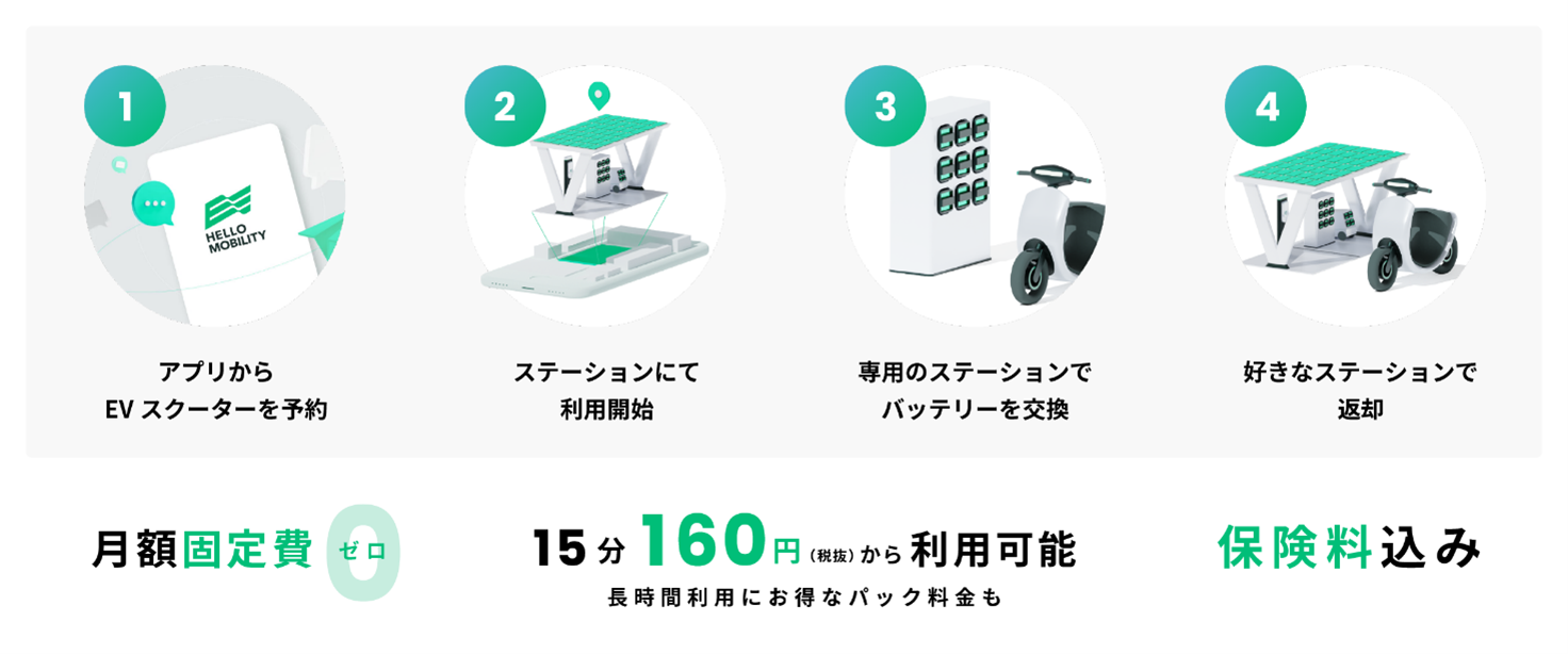 シェアモビリティサービス「HELLO MOBILITY」においてEVスクーターとバッテリーシェアリングを提供開始