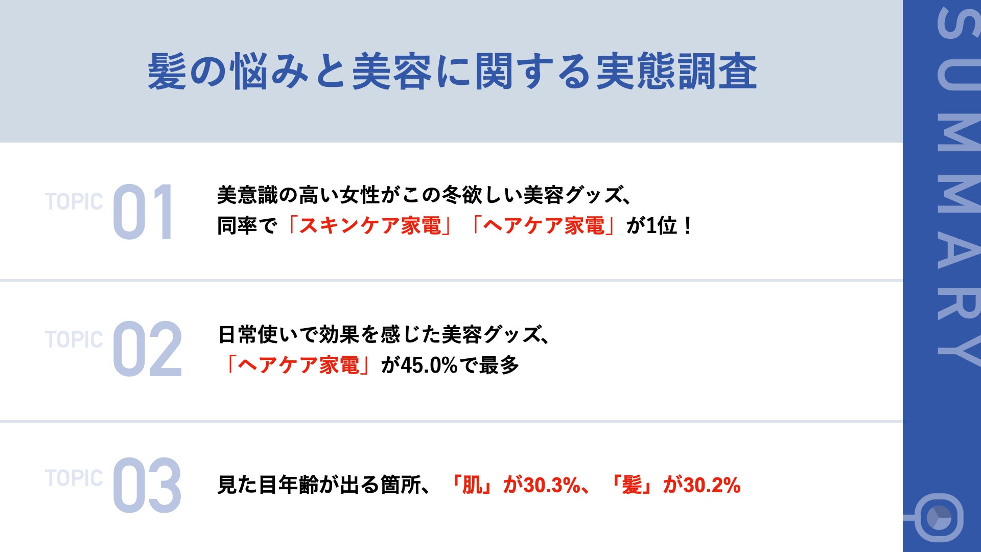 - 欲しい美容グッズ、「ヘアケア家電」「スキンケア家電」が同率1位