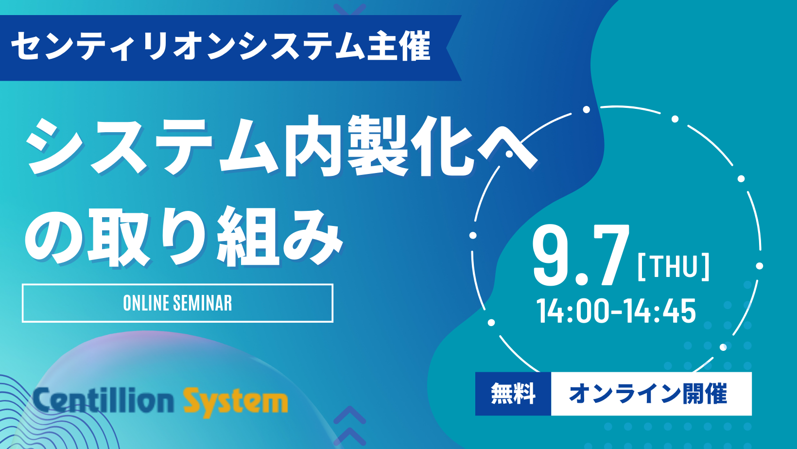 【9月7日(木)14:00~】センティリオンシステム主催「ヤマハ発動機の事例に見る、システム内製化成功のステップとは」と題し、オンラインセミナーを開催 <※申込み受付終了>