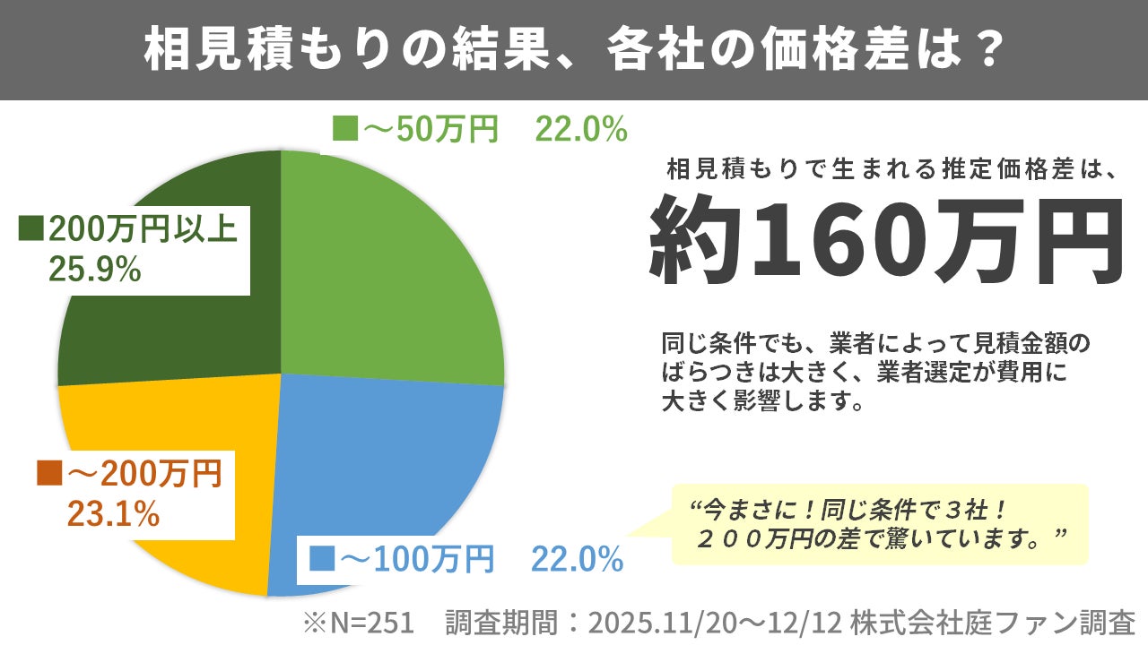 相見積もりで判明した“価格差”、±200万円以上が約26%