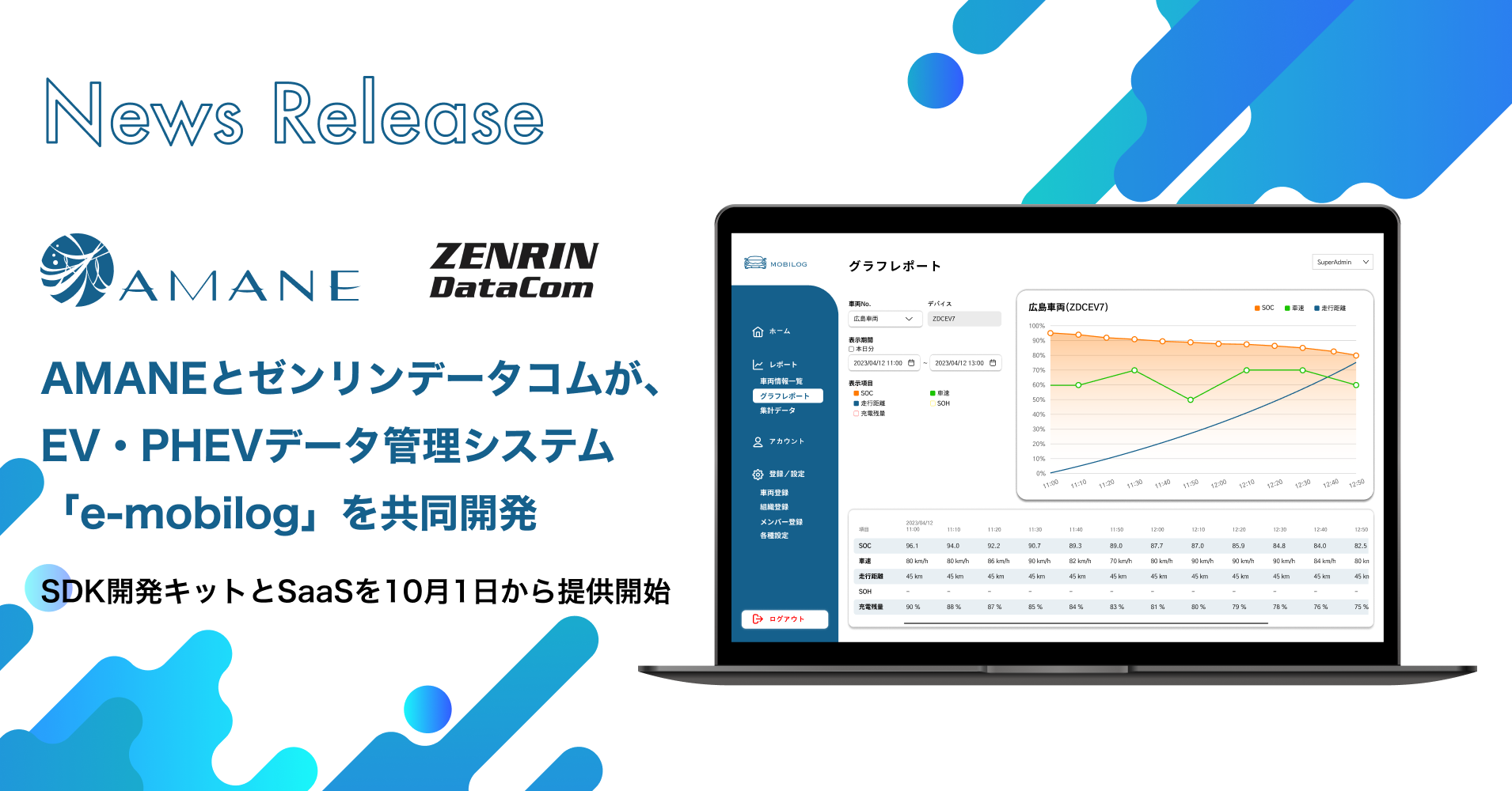 AMANEとゼンリンデータコムが、EV・PHEVデータ管理システム「e-mobilog」を共同開発