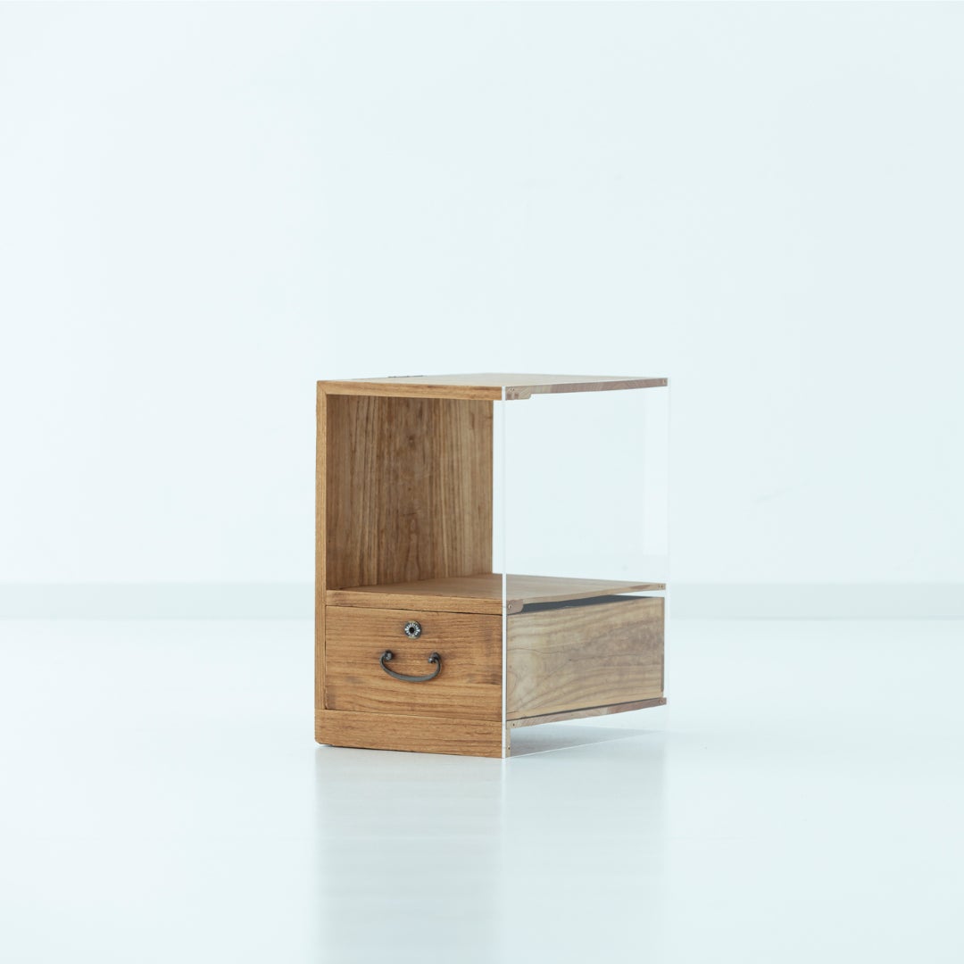 今回は、古き良き箪笥と新素材であるアクリルを組み合わせることで、新しい家具をデザインしました。