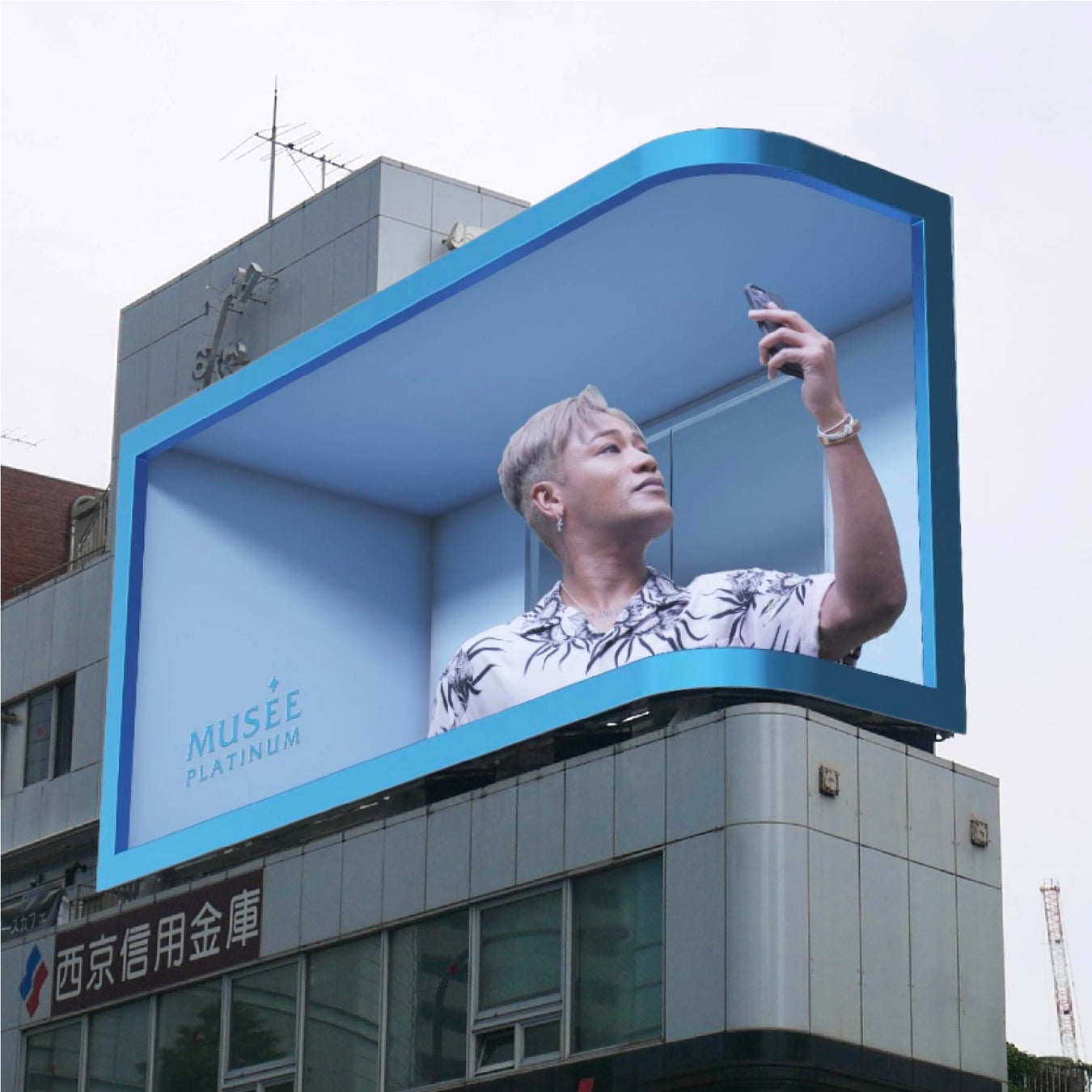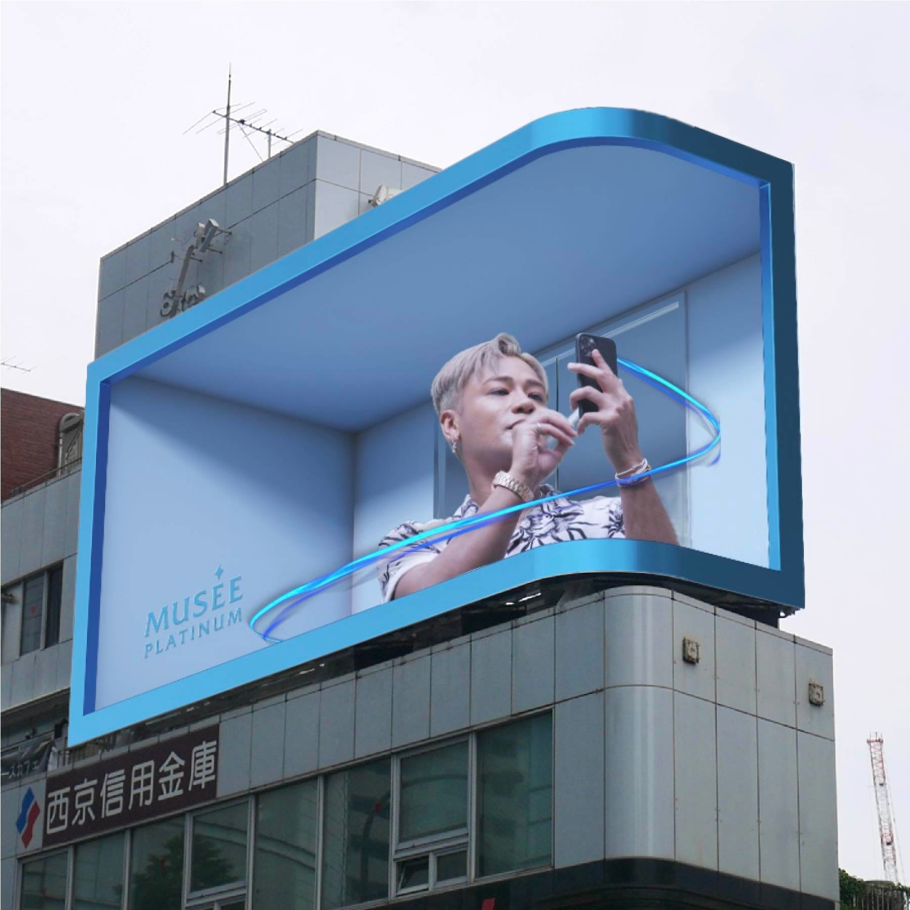 LDH JAPAN所属のタレント4名それぞれが裸眼3D映像で大型ビジョンに登場し、事前にミュゼプラチナムの公式LINEから入手した専用アプリのURLを開き、スマホをビジョンにかざすと、タレント4名が描いたデジタルアートを、“あたかも直接手渡ししてもらったかのように”プレゼントされます。