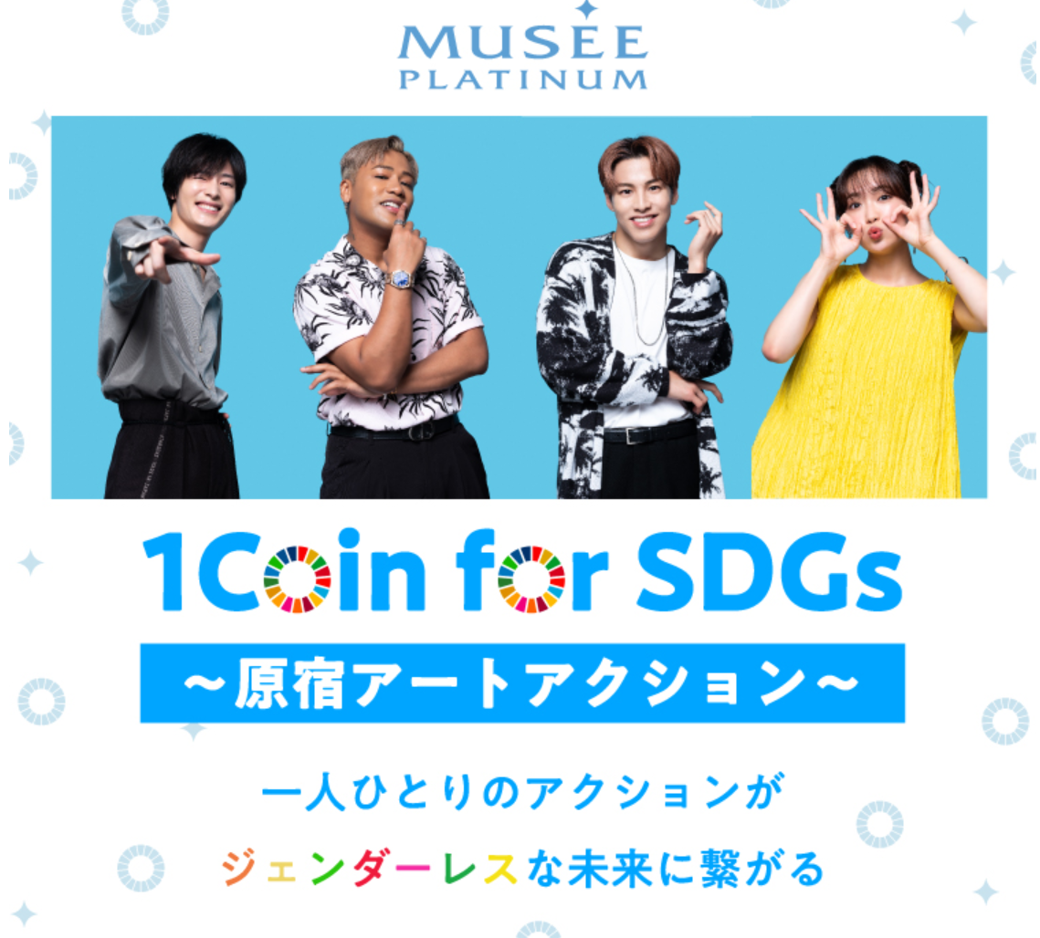 今回のインタラクティブ広告は、株式会社LDH JAPAN(本社:東京都目黒区、代表取締役CEO:森雅貴)のタレント4名(ELLY、RIKU、塩野瑛久、山口乃々華)を起用した、株式会社ミュゼプラチナムの広告で、“1Coin for SDGs~原宿アートアクション~”のタイトルがつけられ、一人ひとりのアクションがジェンダーレスな未来に繋がることを願い、アートを通して「ジェンダー平等」を考えるきっかけを提供します。