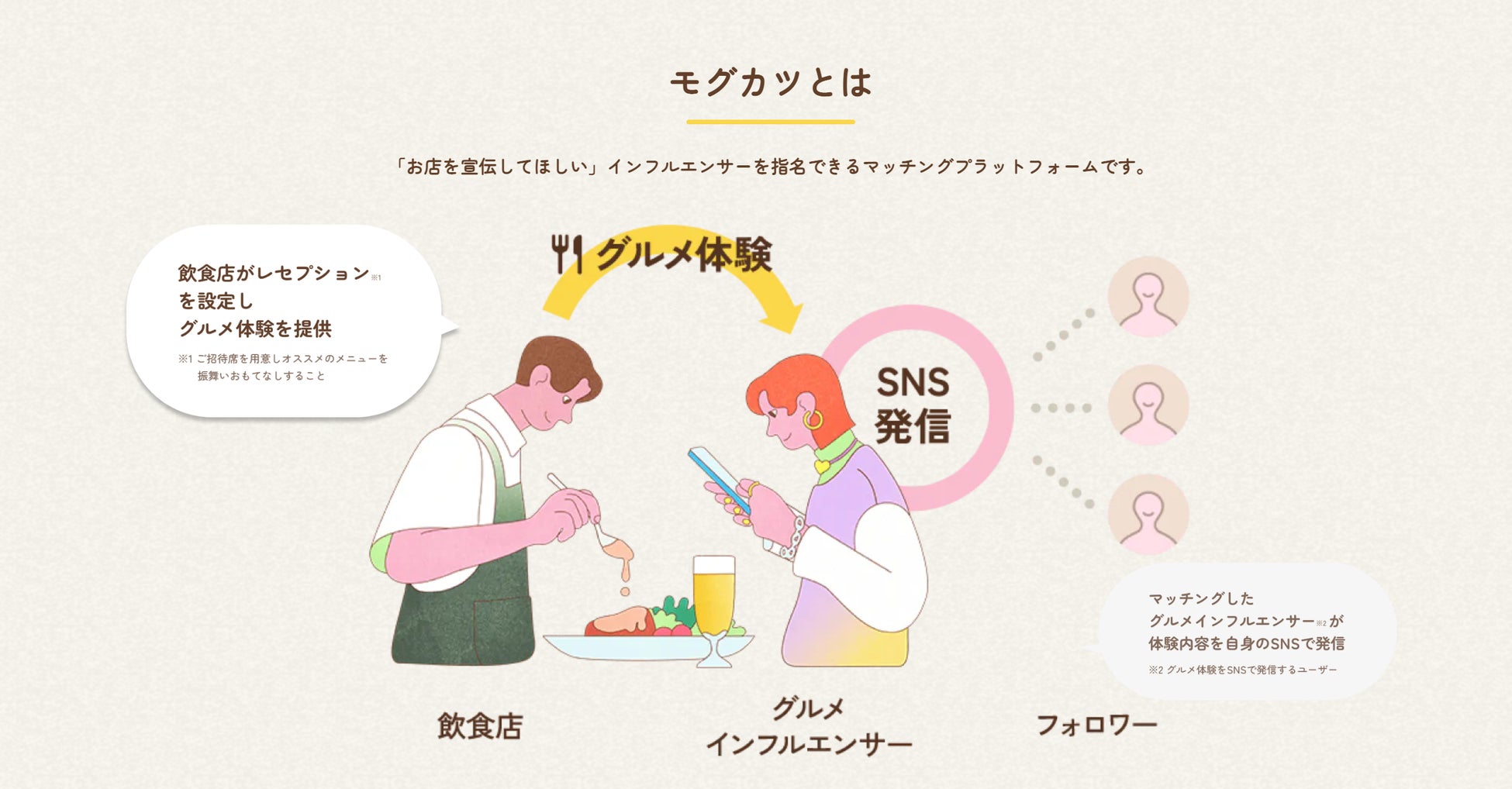 「モグカツ」は飲食店とグルメインフルエンサーの新たな出会いをつくります。